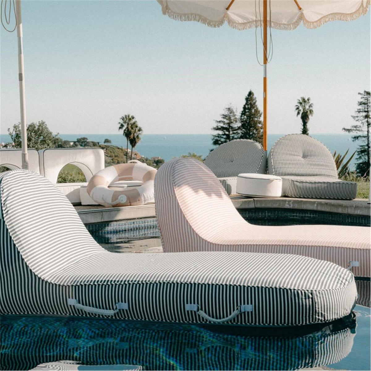Relax into weightlessness with the Pool Lounger, a luxurious inflatable chaise sure to elevate your pool decor to a whole new tier. An inflatable inner form crafted from ultra-durable PVC with a Pleasuretex outer cover combines to provide comfort, durability and the B&PCo aesthetic. Perfect for tranquil moments of reflection in the pool, with space enough for a friend if company is desired. The inflatable Pool Lounger marries timeless luxury with durability to add a chic touch to your poolside decor. Every technical feature gears toward sustained aquatic enjoyment, from marine-grade stainless steel fixturing, puncture resistant PVC inner, and a Pleasuretex cover made for years of carefree drifting on sunny afternoons. Utilize any standard pump via the one-way Boston valve to bring this oversized island in the sun to life in minutes. Lightweight at 9 lbs, the Pool Lounger is your key to poolside leisure.