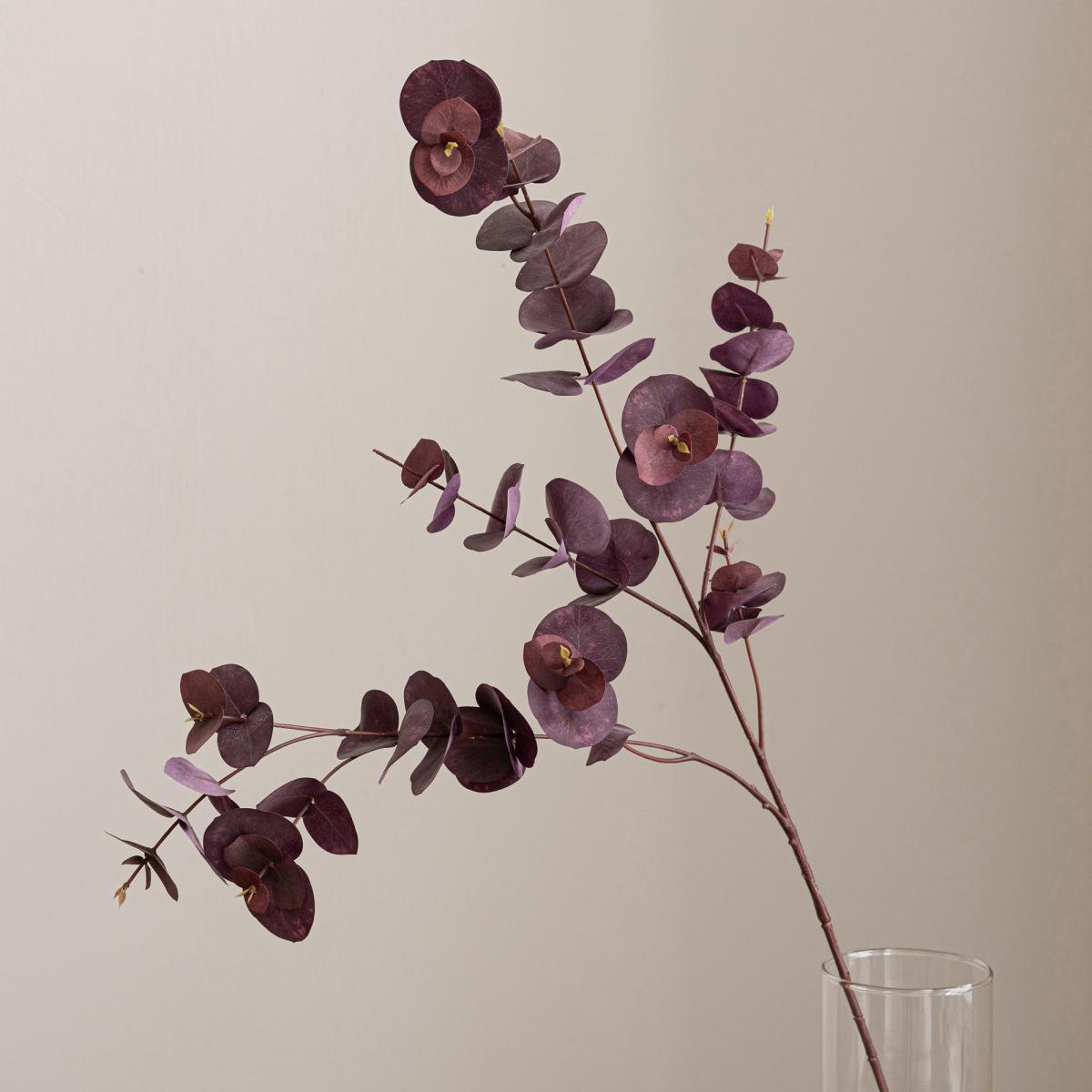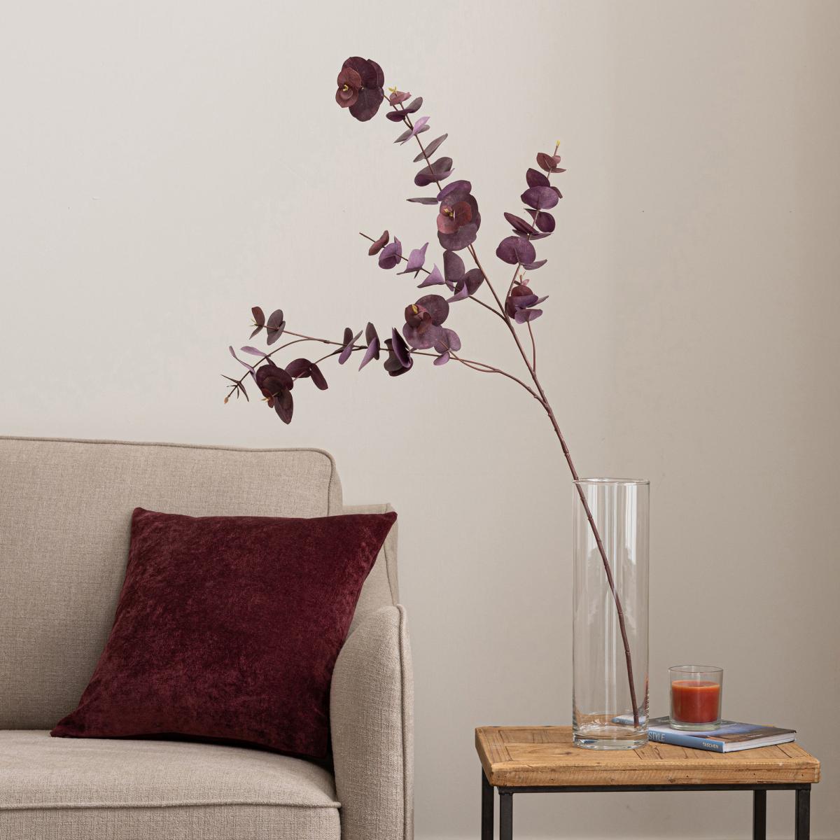 I love this purple eucalyptus for its striking colour and realistic appearance, making it a versatile piece for various interiors. It works particularly well in contemporary and minimalist spaces where a pop of colour adds interest without overwhelming, or in eclectic settings where it can complement other bold accents. Practical styling tips include placing it in a tall, clear vase for a sleek look or grouping a few together for a more impactful display. It’s ideal for filling empty corners, dressing up coffee tables, or adding colour to neutral window sills, all while requiring minimal maintenance.