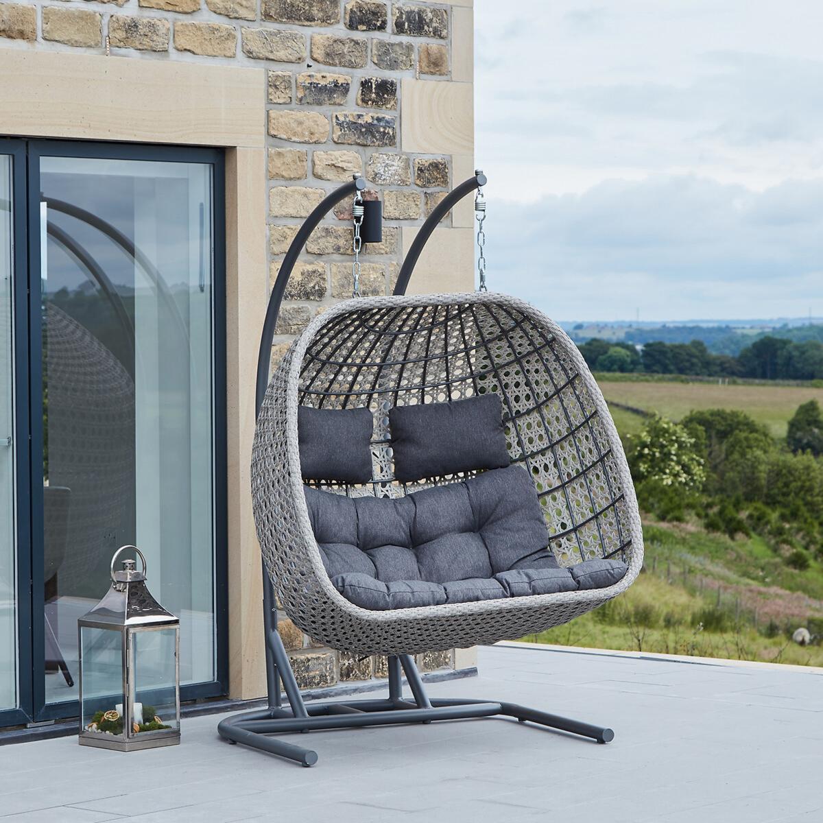 Premium Weatherproof Double Hanging Garden Egg Chair - Stone Grey