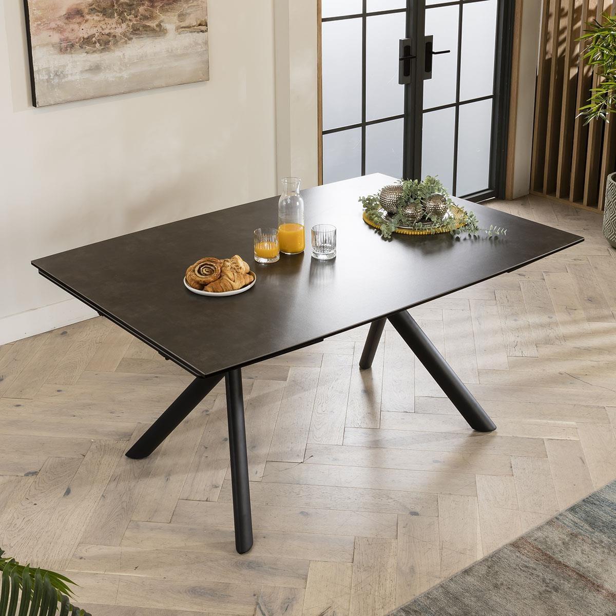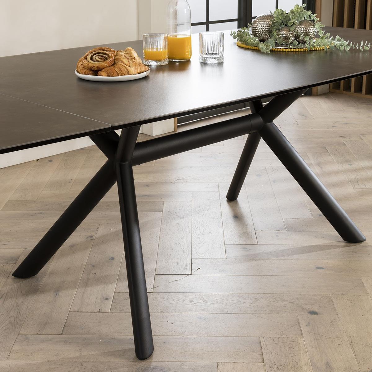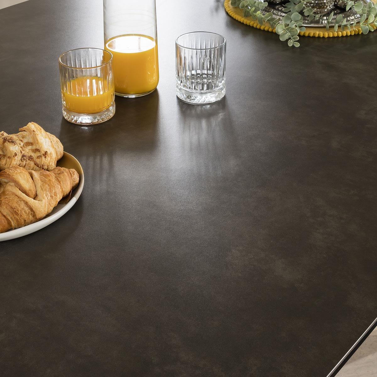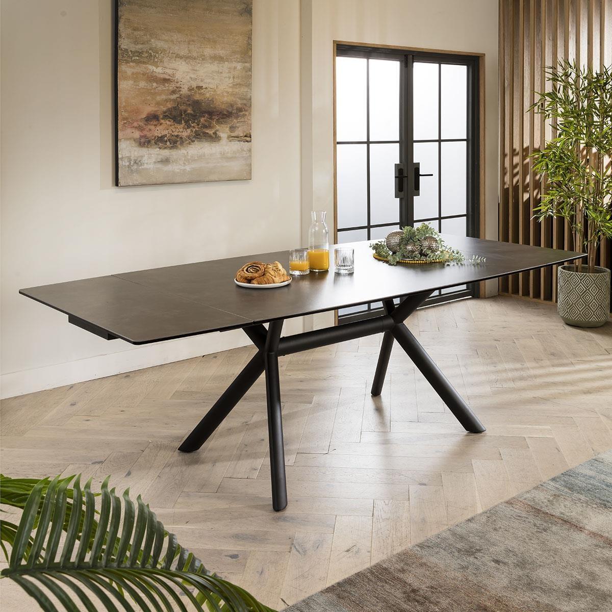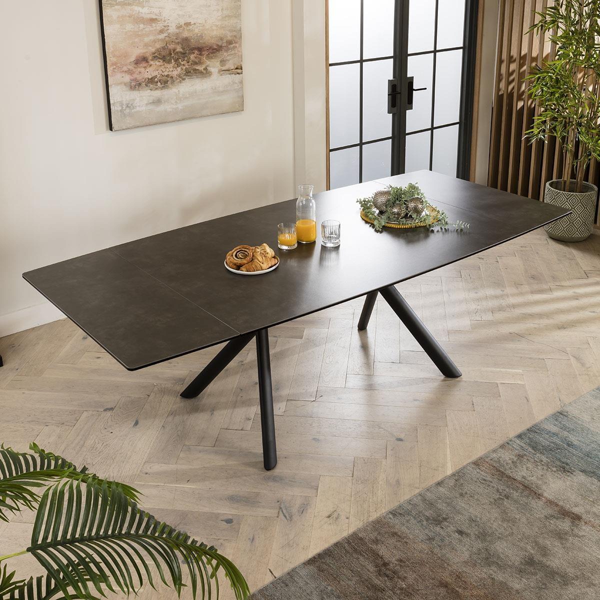 Dine in luxury with Arlo, a modern 6-10 seater dining table with an extra-wide 110cm top, this extending ceramic dining table easily expands from 160cm to 240cm. Boasting a slate grey ceramic top that ensures durability against scratches, stains, and heat with unique metal legs for a sturdy base with plenty of legroom. Arlo's versatility shines through its extending design, accommodating gatherings of different sizes. Ranging from an intimate 6-seater setup to a spacious 10-seater arrangement, the table effortlessly adapts. The extension leaves, concealed beneath the table, ensure a smooth transition, making it an ideal choice for dynamic dining spaces. Crafted with a stunning grey slate effect ceramic top, this modern dining table not only elevates aesthetics but also guarantees durability. The scratch, stain, and heat-resistant surface provide a worry-free dining experienceno need to fret over spills, scuffs, or hot dishes. Arlo stands as a resilient and elegant centerpiece for any modern dining room. The unique metal leg design strikes a perfect balance between aesthetics and stability. The sturdy base ensures durability, while the thoughtful design allows ample room around the table without obstructive legs. Though some assembly is required, the straightforward process, with three-part legs and a one-piece top, is made simpler with two people due to the table's substantial weight. Experience modern dining at its finest with Arlo. W160-240cm D110cm H75cm Ceramic is scratch, stain and heat resistant Extra wide tabletop