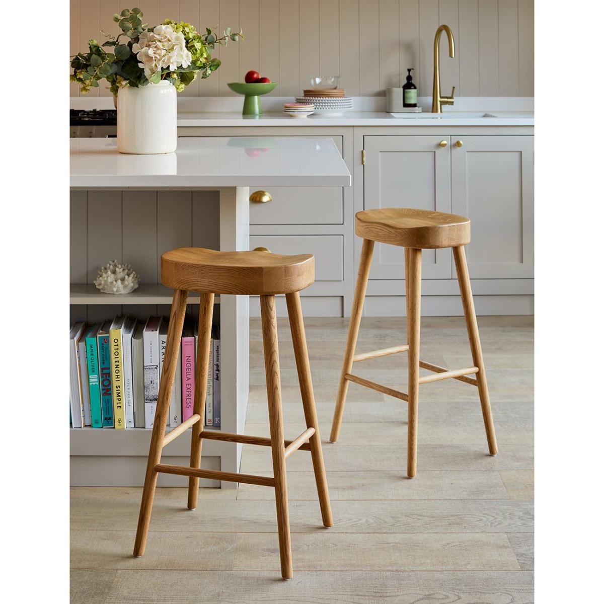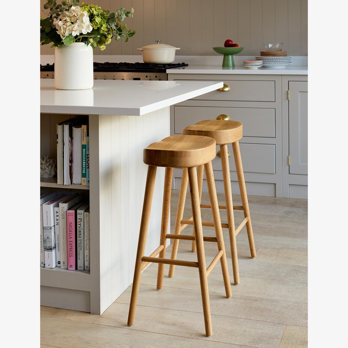 Sip your morning coffee in complete comfort on our weathered oak stool. Our best-selling counter-height stools have been an interior design favourite for years, suiting all interior décor styles, from industrial to farmhouse. Each stool is crafted from solid oak and topped with a smooth glossy finish for a durable kitchen stool that will remain stylish for years to come. Our stools are complete with rungs to rest your feet and an ergonomic saddle-shaped seat for maximum comfort without compromising on style.