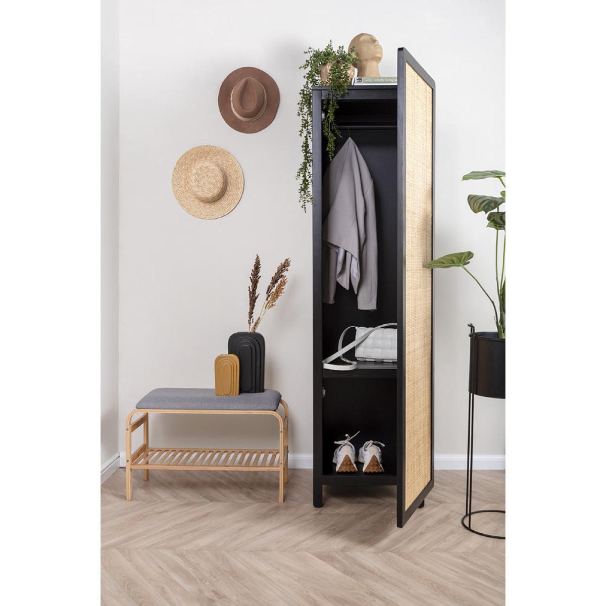This single wardrobe is the perfect place to store clothes, coats, or shoes. Its black coloured wood finish gives the piece a modern look. This aesthetic is completed by the wooden rattan-effect door that is widely trending at the moment. This wardrobe is the height of fashion and will look stunning in a modern or contemporary bedroom or large hallway. It features a hanging rail with a shelf situated above it. The floor of the wardrobe can be utilised for storage as well as the top of the wardrobe, making it a roomy space to keep your belongings and precious items. *Moot Trading Ltd is not a lender and acts only as an introducer. The credit product is provided by Klarna Bank AB (publ). Credit is only available to permanent UK residents aged 18 and over, subject to status. Terms and conditions apply. Please note that the following products are not regulated by the FCA: Pay in 30 days and Pay in 3 instalments. Read More.