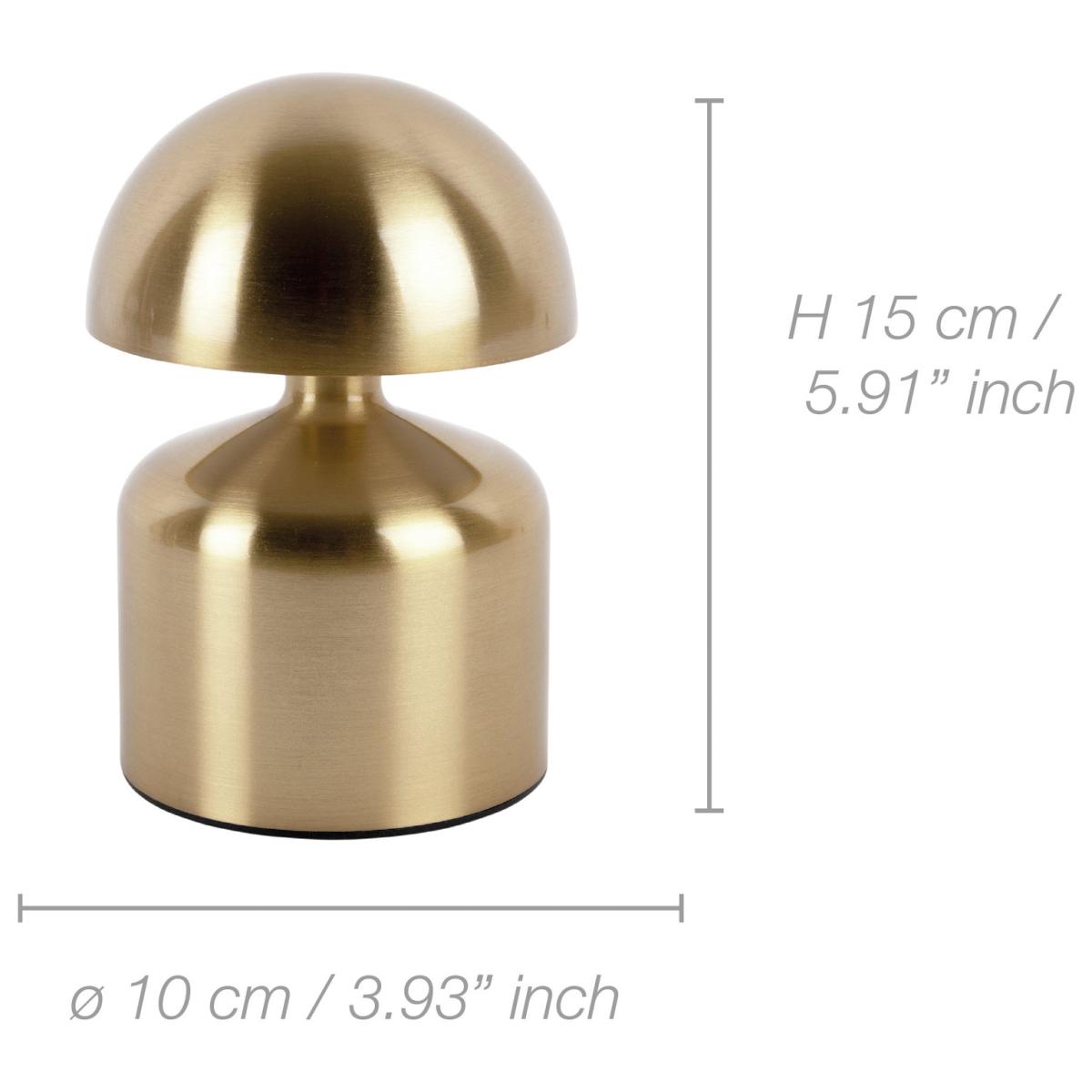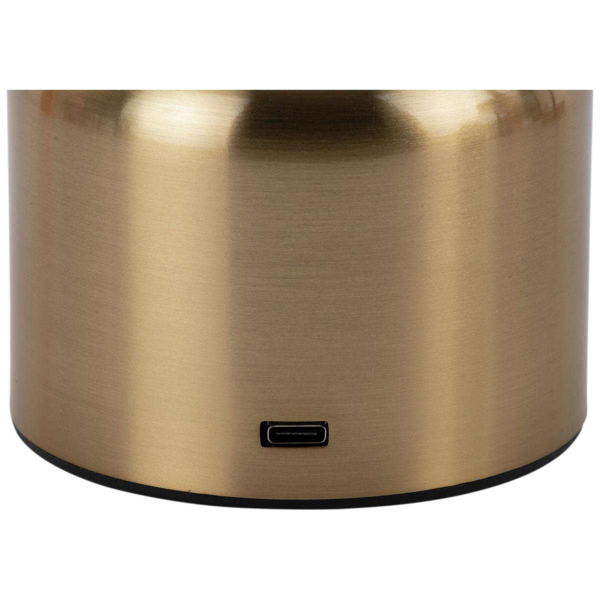 This trendy LED lamp by Leitmotiv is not only a beautiful addition to your home, its hugely convenient too! The Impetu lamp is crafted from iron and finished in a brushed gold hue. It can be placed where you need it; on a shelf as a reading companion, or on a sideboard for intimate post-dinner lighting. The lamp is chargeable (using a USB cable) and the touch control allows for easy switching on and off, as well as being able to set your own desired brightness. Rechargeable LED. Dimensions: Overall size H17, W10, D10 cm. Diameter 10cm. Shade size H5, D10cm. Diameter of base 9cm. Cord length 1m. Bulb Information: Integrated LED bulb(s)(included). Recommended maximum wattage: 2 watts. Dimmable LED bulb. LED bulb only. Colour rendering index 85. Colour temperature 6000. K. Rated luminous flux 150. General Information: Shade colour: gold. Base colour: gold. Shade material: metal and plastic. Base material: metal and plastic. Product features: USB connectivity. Touch sensor switch - on/off. IP rating 20. Supplied assembled. This lighting product is a class 1 fitting. Manufacturer's 1 year guarantee.
