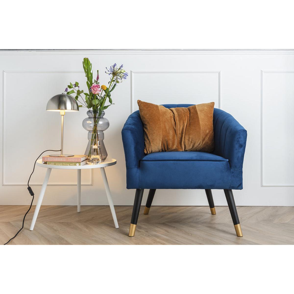 The Royal armchair from Present Time's Leitmotiv brand is a traditionally glamorous piece. It combines classical lines and curves with luxury materials and retro accents to create a chair which generates a pleasant frisson of nostalgia while radiating a sense of timelessness. Part of the Danish designer company's Royal range of furniture, it incorporates a sturdy natural wood frame, generous padding and luminous blue velvet upholstery. The slender angled legs with their gold accented tips carry echoes of irresistible 1950s design, while the seat itself is wide and deep enough for you to sink into and grab a few moments or hours of quality relaxation. *Moot Trading Ltd is not a lender and acts only as an introducer. The credit product is provided by Klarna Bank AB (publ). Credit is only available to permanent UK residents aged 18 and over, subject to status. Terms and conditions apply. Please note that the following products are not regulated by the FCA: Pay in 30 days and Pay in 3 instalments. Read More.