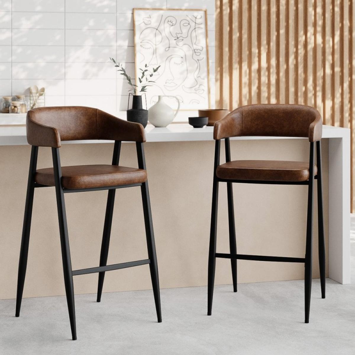 I’m a big fan of this Presley stool for its warm tan upholstery and slim black metal frame - a combo that works equally well in contemporary, industrial or Scandi-inspired kitchens. Pair two or three along a marble or oak breakfast bar, then echo the metal legs with matte-black tapware or pendant lights. Keep styling simple: add a textured foot-wool draped over the seat for cosy contrast, and introduce a couple of deep-green or navy accents elsewhere to tie the colour scheme together.