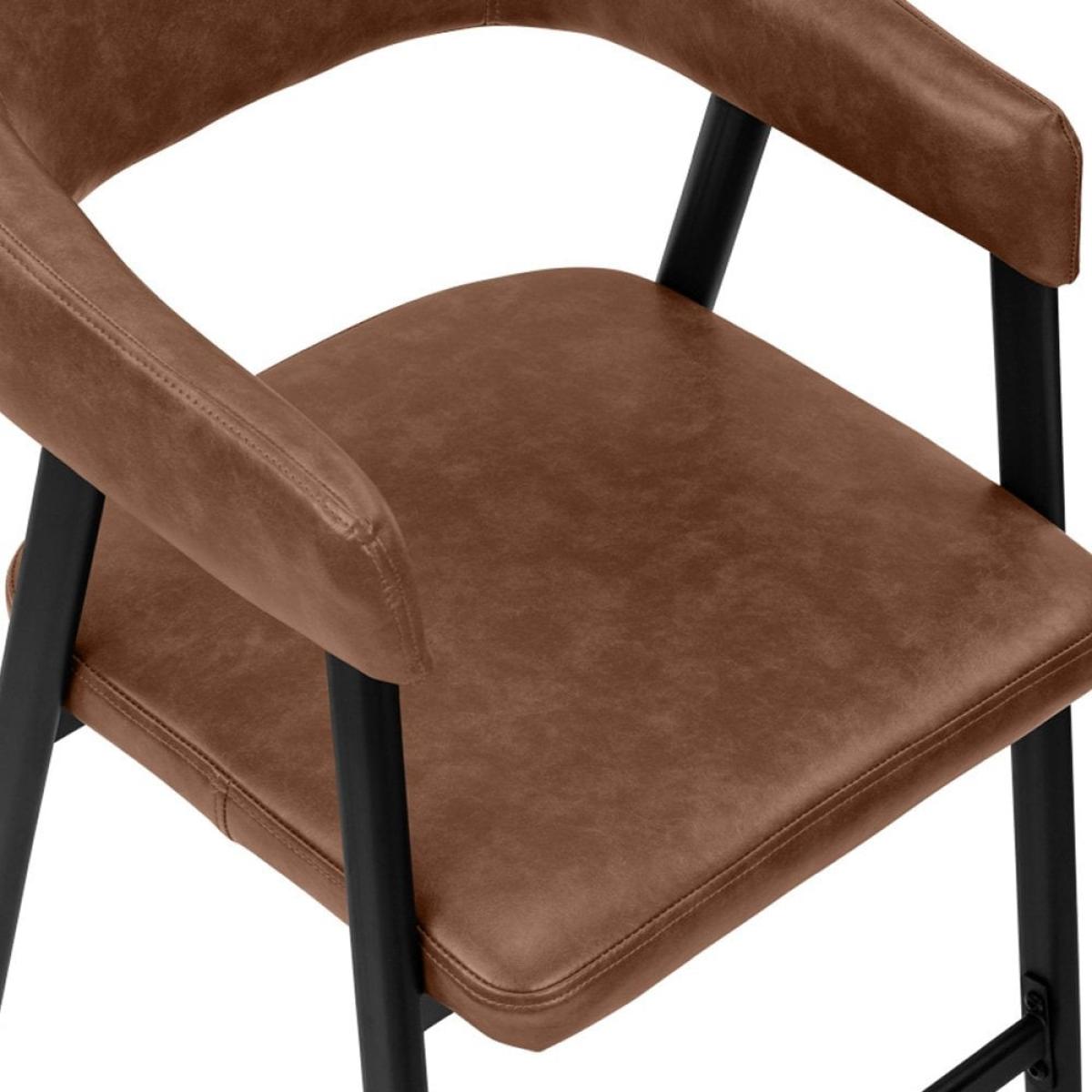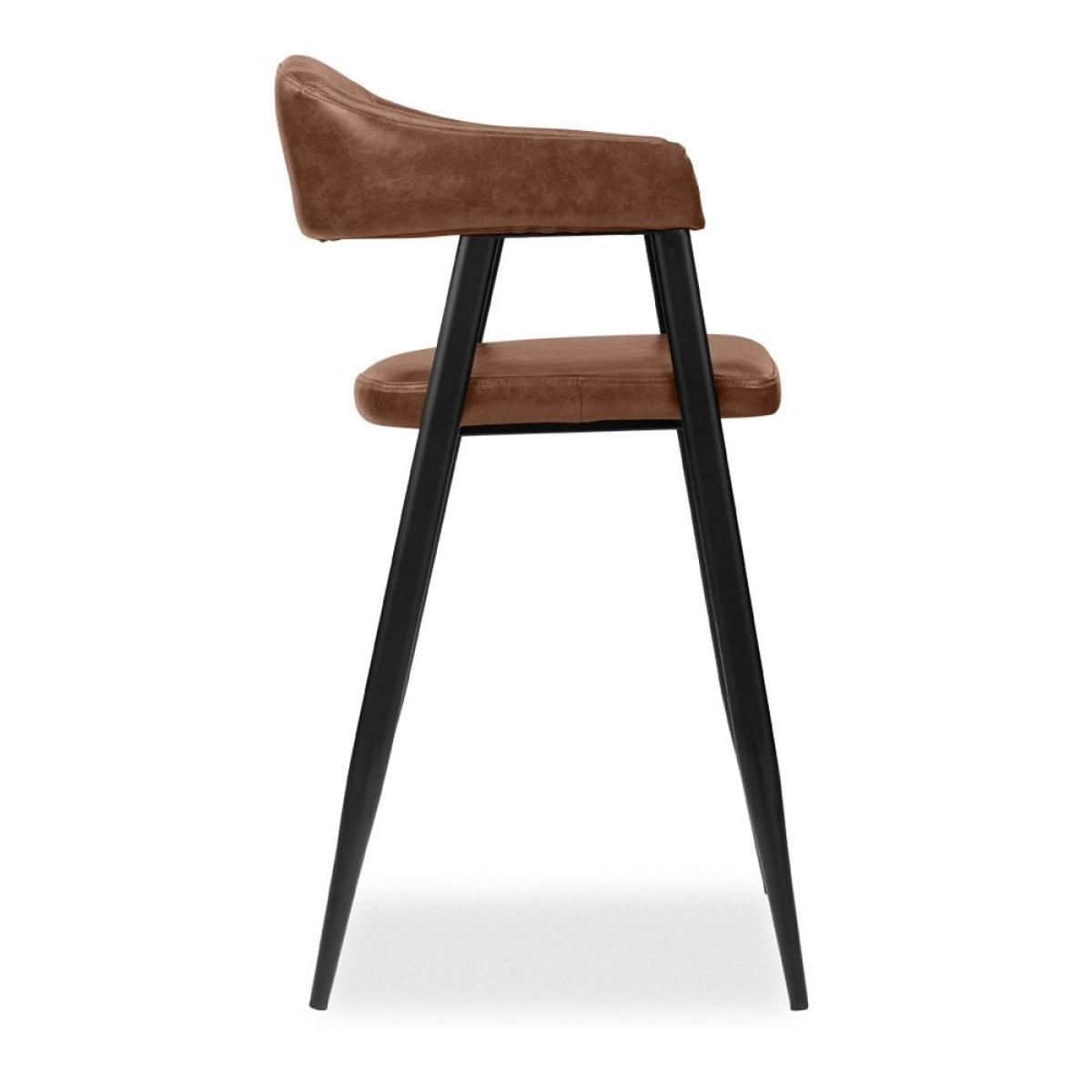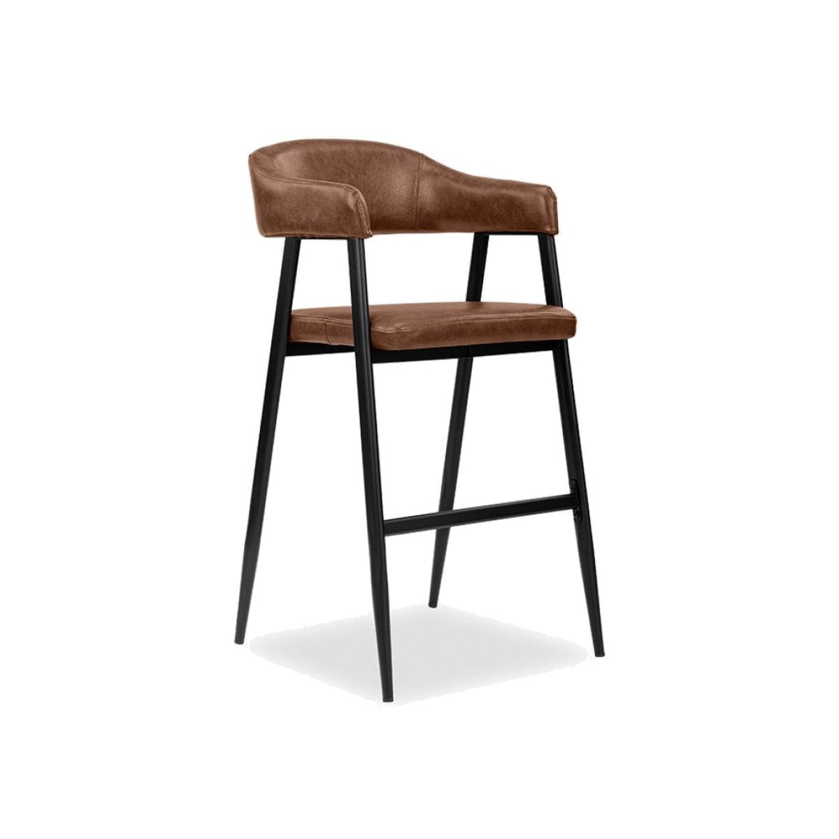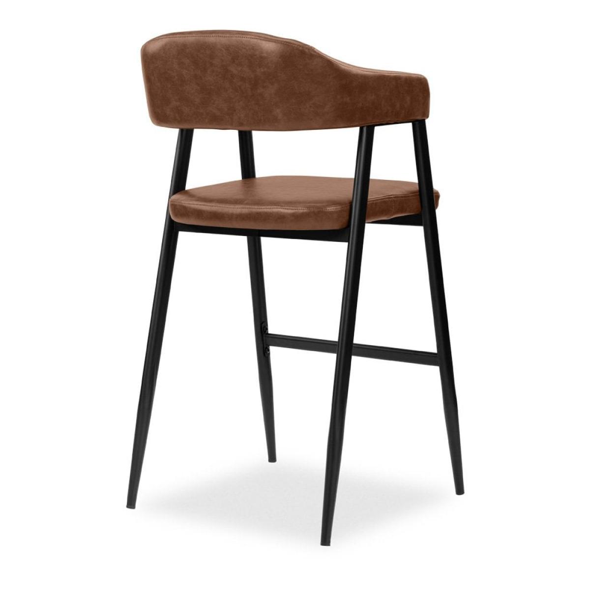 An industrial kitchen stool made from soft faux leather and metal, the Presley displays strong structural design and comfort, all in one. Upholstered in vintage tan with a padded backrest and seat, and durable black metal legs, angled for further stability. This is style and functionality for your modern dining space. View The Presley Range