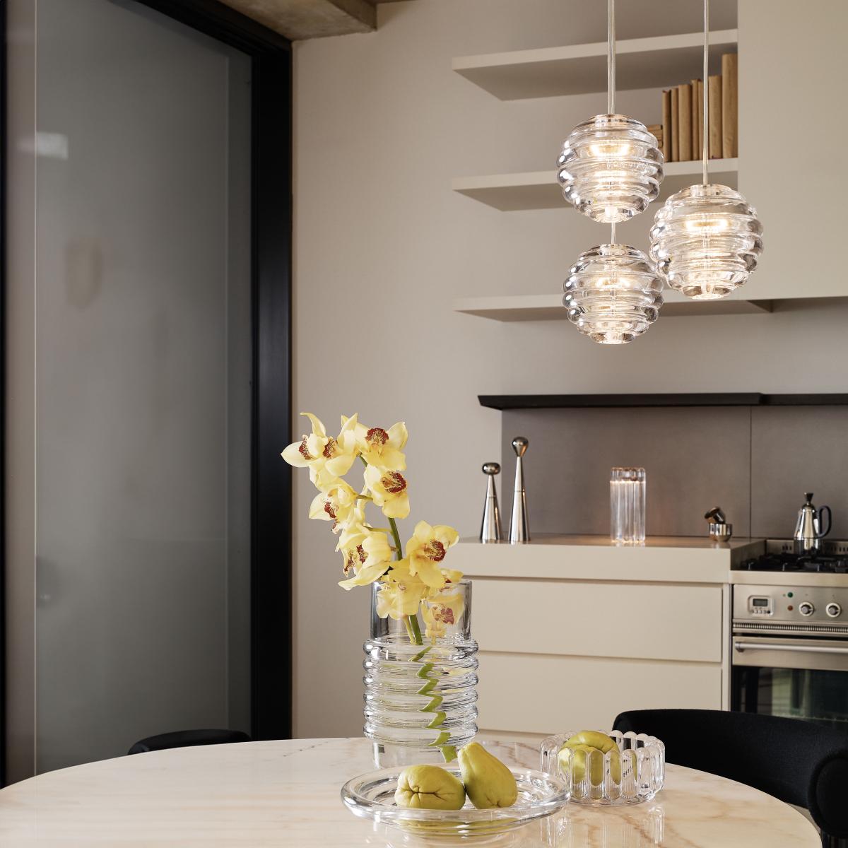 The Press Mini Sphere Pendant is a fantastic piece that combines clean lines with a modern yet timeless appeal. I love how its transparent glass design allows it to seamlessly blend into various interiors, from contemporary minimalist spaces to more eclectic settings. Its LED component ensures energy efficiency while providing a soft, diffused glow that enhances the ambiance without overpowering the room. This pendant works well over kitchen islands, dining tables, or even in a cluster to create a striking feature. For styling, consider pairing it with matte neutrals or contrasting textures like wood or metal for a balanced look. It's versatile enough to upgrade both casual and more refined interiors, making it an easy choice for adding a touch of sophisticated modernity.