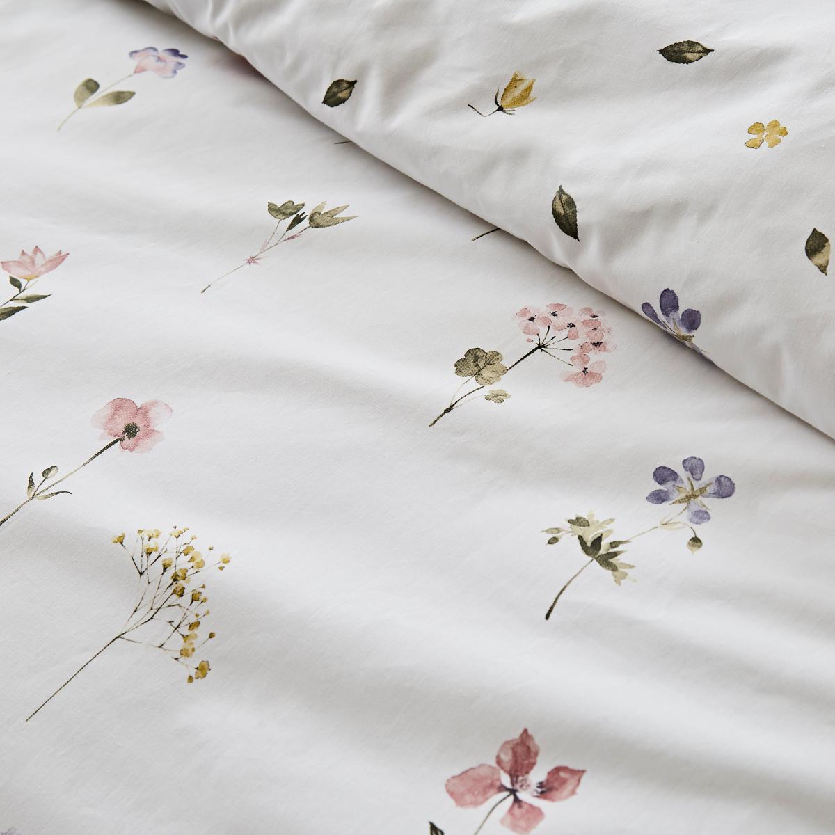 Pressed Floral White Duvet Cover and Pillowcase Set White