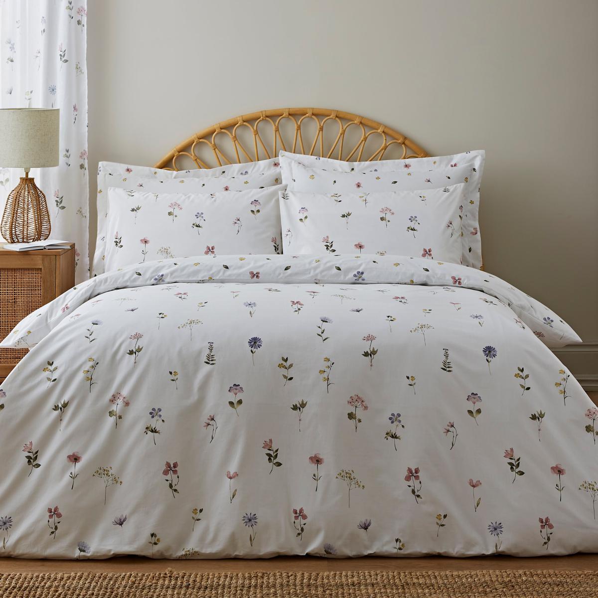 Pressed Floral White Duvet Cover and Pillowcase Set White