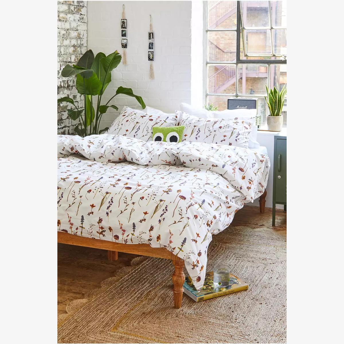Fill your space with the feel of spring with this pretty duvet set crafted from super soft cotton. Features pressed wild flowers motif onto matching pillowcases and duvet. **About Better Cotton** \- By choosing our cotton products, you’re supporting our investment in Better Cotton’s mission \- This product is sourced via a system of mass balance and therefore may not contain Better Cotton \- Bettercotton.org/massbalance **Content + Care** \- 100% Cotton \- Machine wash **Size** \- Single (includes 1 pillowcase): 135cm (W) x 200cm (H) \- Double (includes 2 pillowcases): 200cm (W) x 200cm (H) \- King (includes 2 pillowcases): 230cm (W) x 220cm (H) \- Pillowcase: 75cm x 50cm