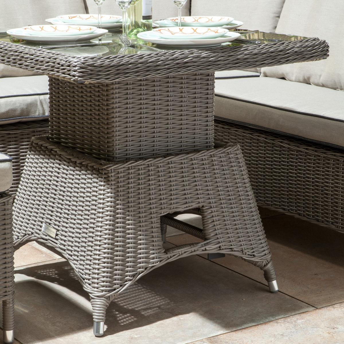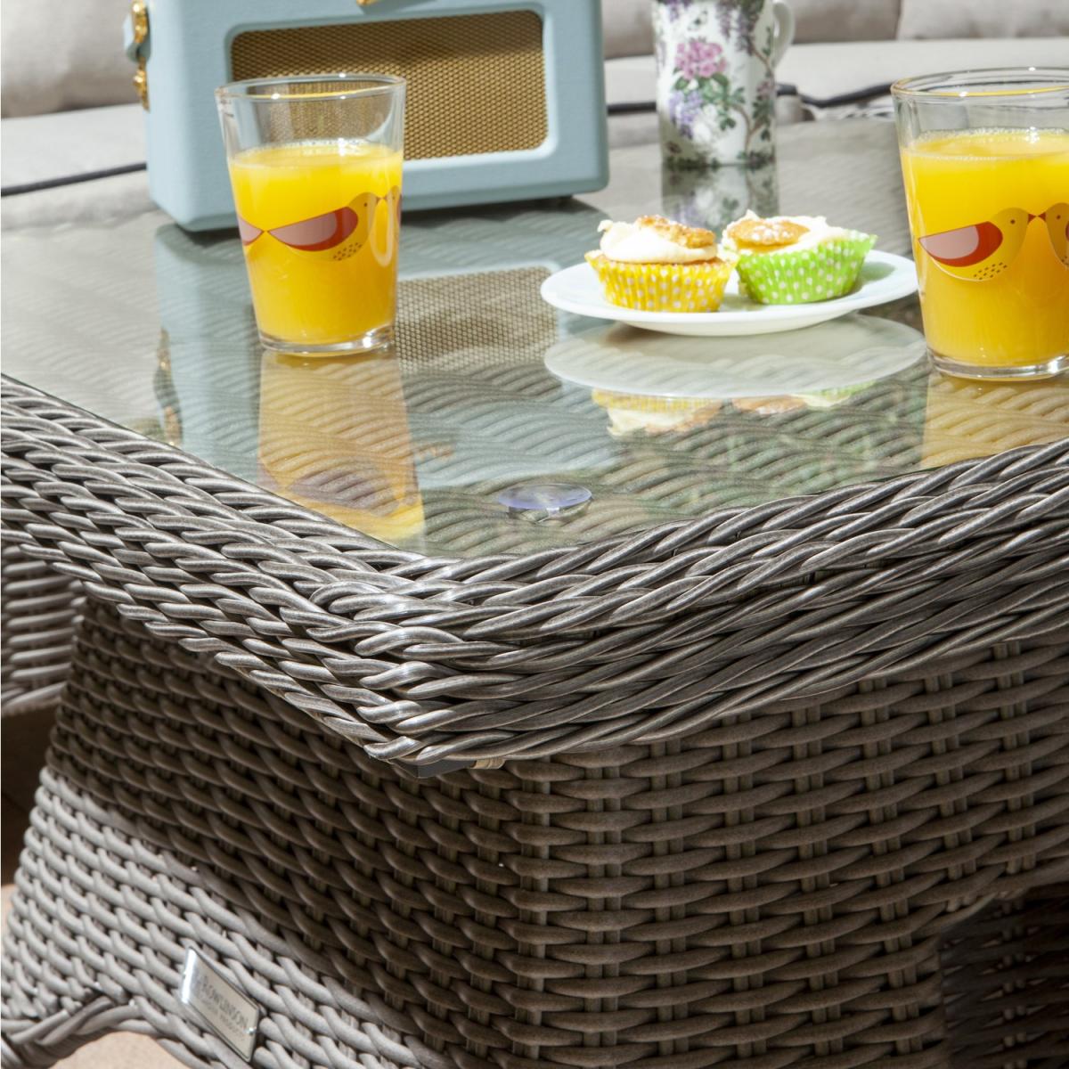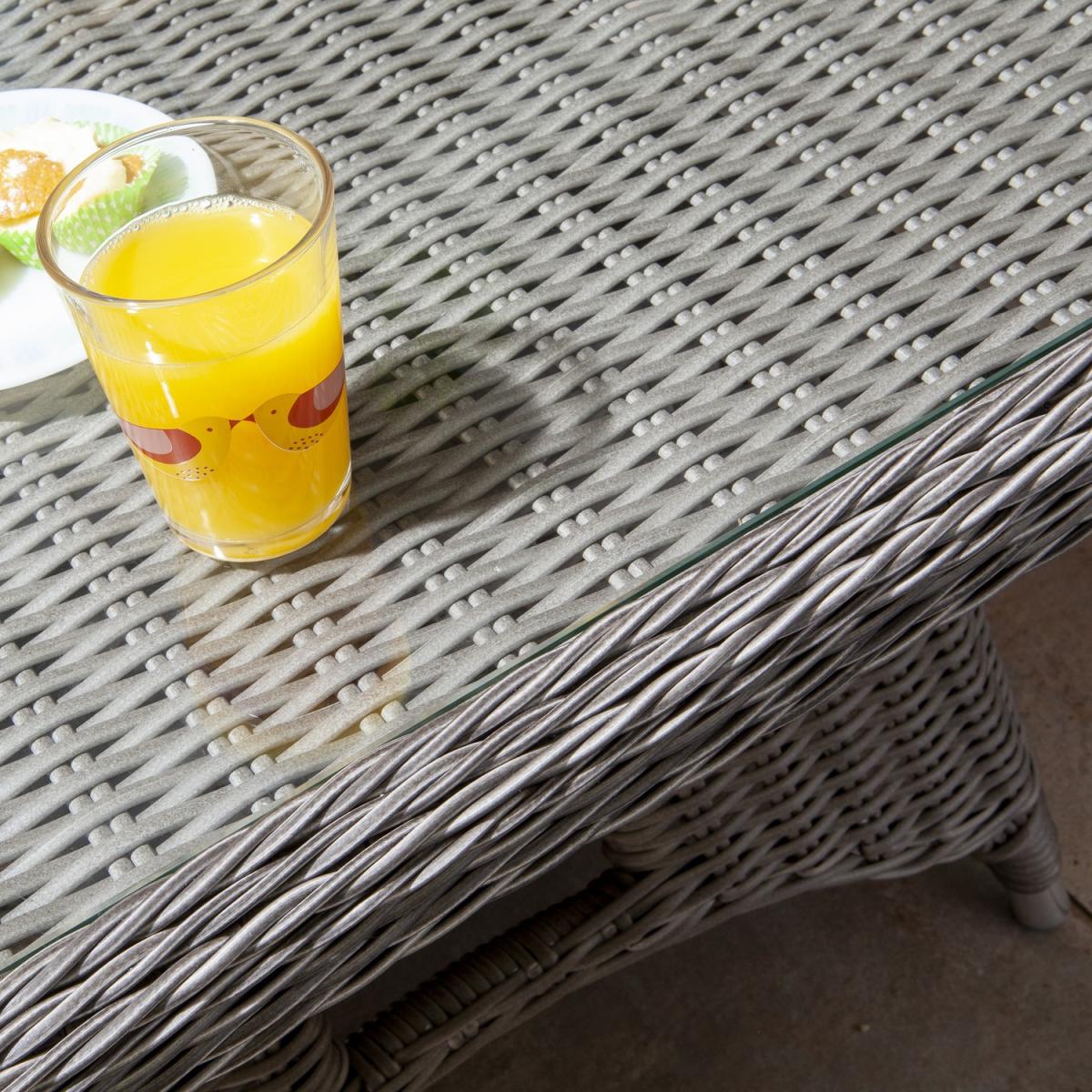 This four-piece dining set is the perfect new addition to your garden this summer season. It comfortably seats up to six people, great to enjoy with family and friends. The back rest cushions and seat pads are included and the rattan weave effect is waterproof making the piece suitable for indoor and outdoor use.