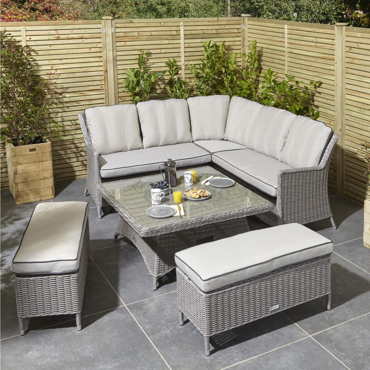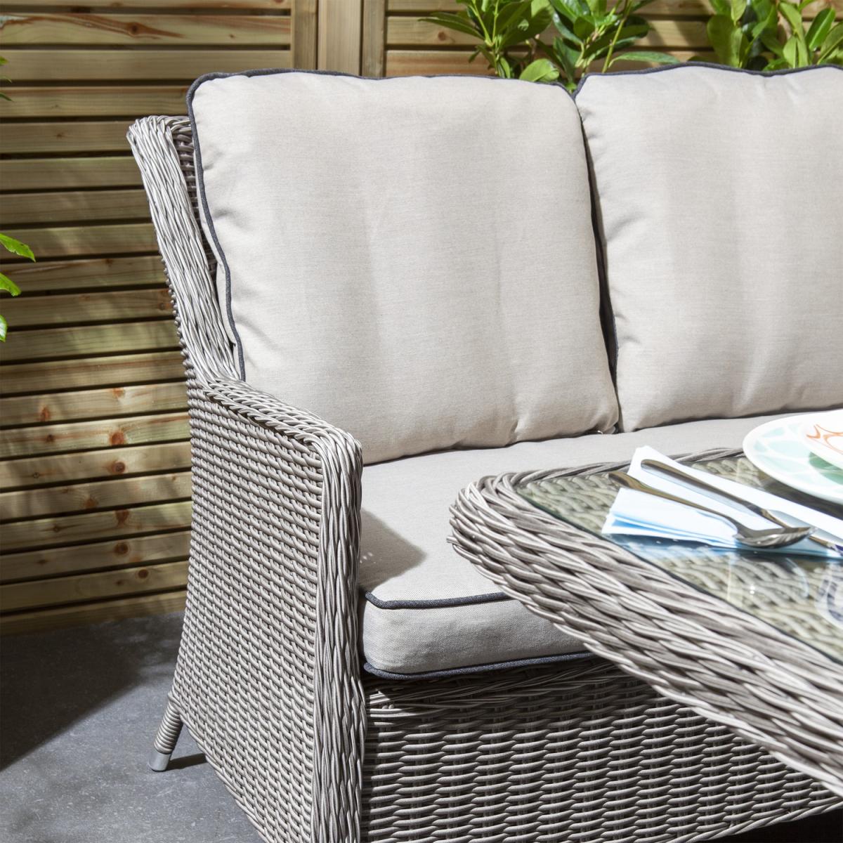 I really like this set because of its versatile natural stone finish, which brings a sophisticated and durable look to outdoor spaces. It works well in contemporary gardens with clean lines, but also complements rustic or coastal styles thanks to its neutral tones. When styling, consider adding cushions in bold or patterned fabrics to create contrast and comfort, and incorporate some greenery around the corners for a more inviting atmosphere. Its practical design makes it ideal for both casual family gatherings and outdoor dinner parties. Keep the setting simple with a neutral palette to highlight the stone and weave details, or go bancier with colourful tableware and accessories for a lively dining area.