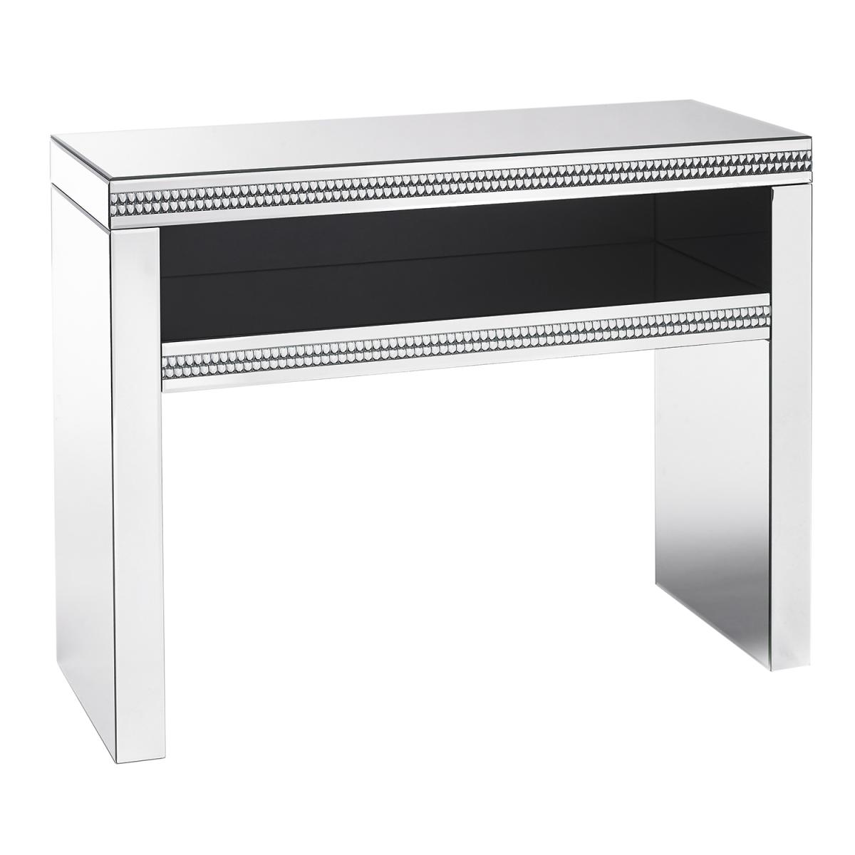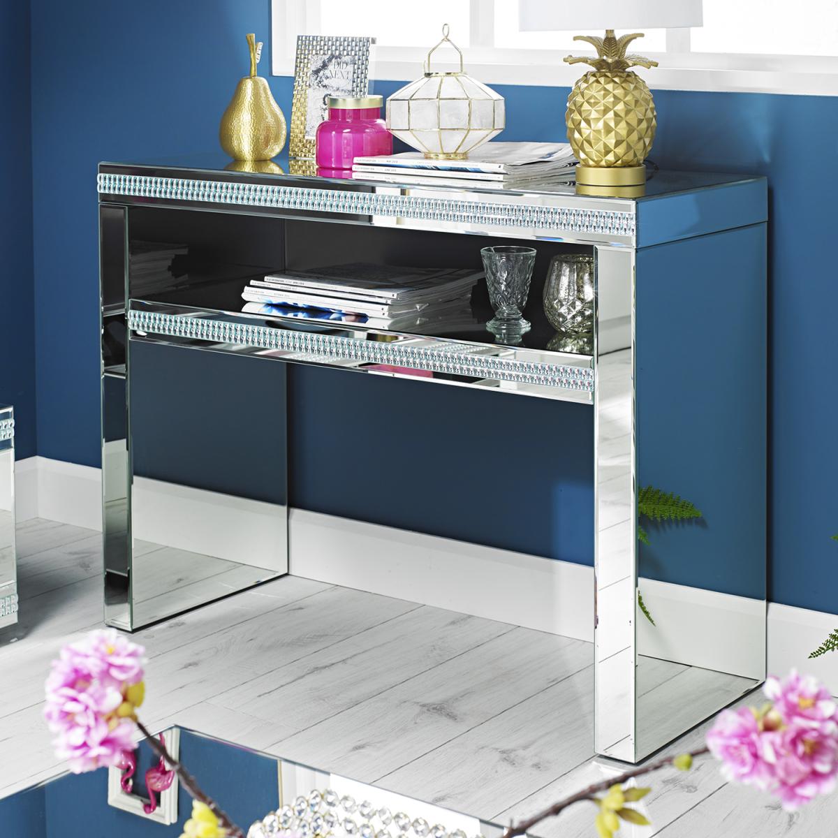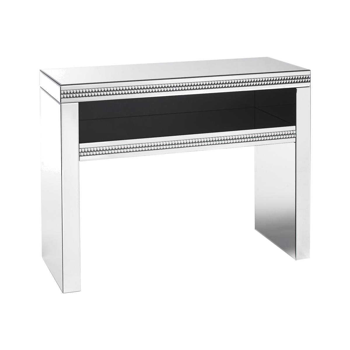 Boasting an elegant and dazzling design, the Prestige Console Table is the perfect furniture must-have for those looking to store their everyday essentials and electronics with ease. With a practical and spacious under-counter storage compartment, mirrored panelling, and dainty embellished trim, this tempered glass console table is sure to be the focus of any home environment.