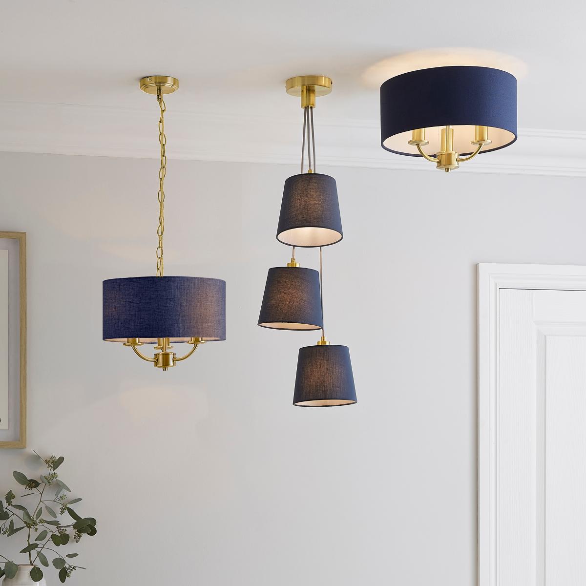 Preston 3 Light Cluster Ceiling Light Fitting Navy Blue