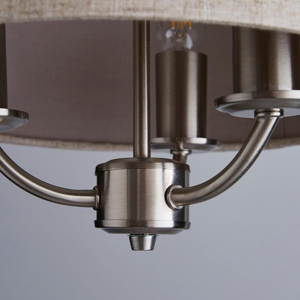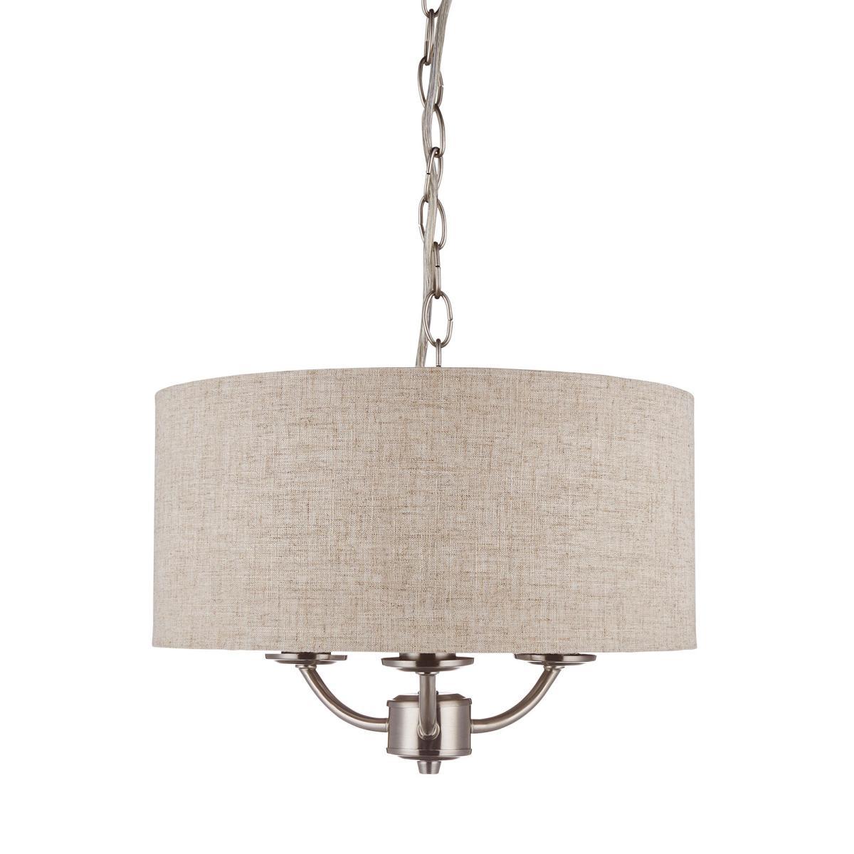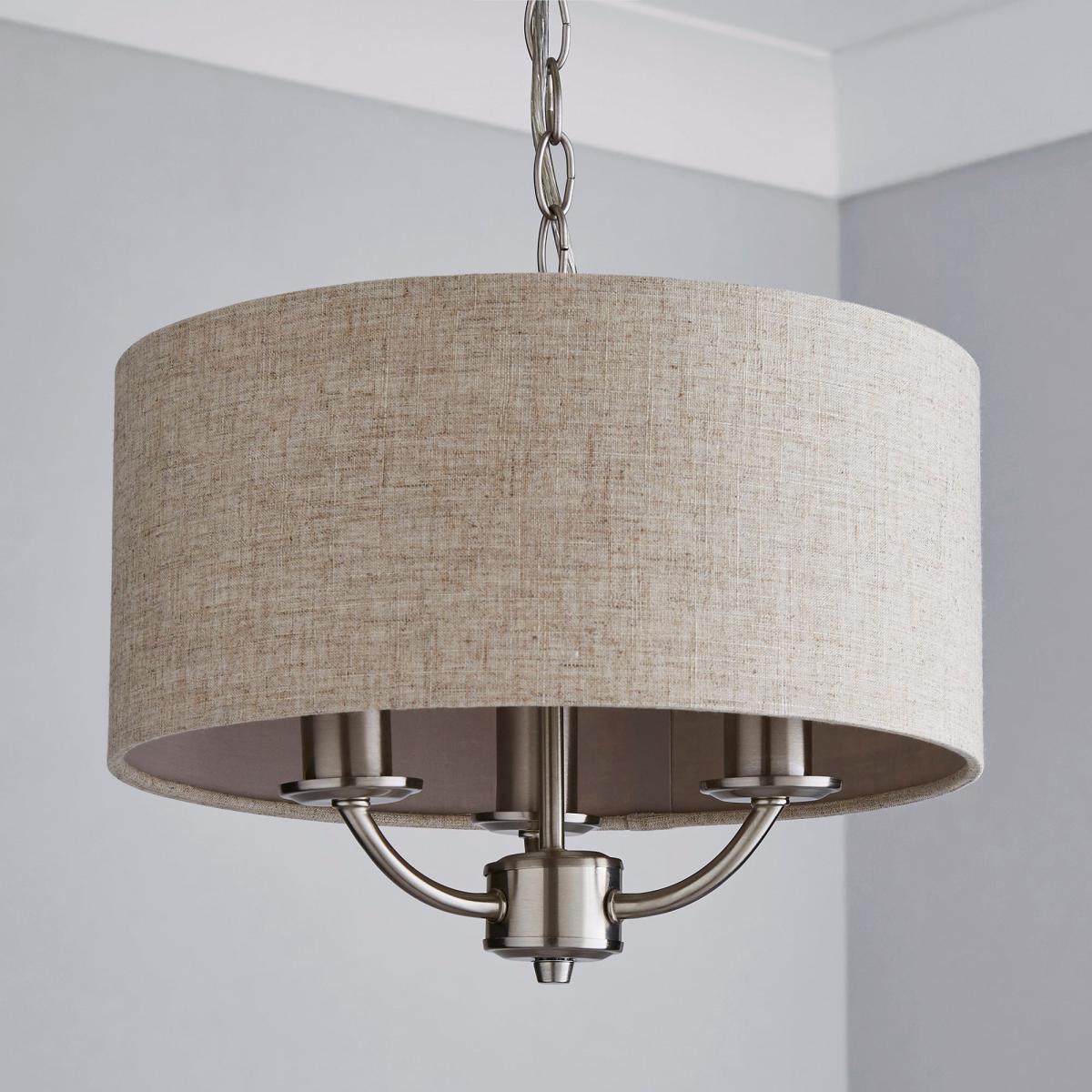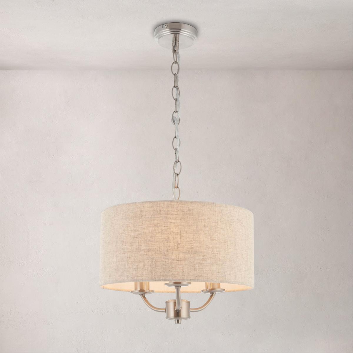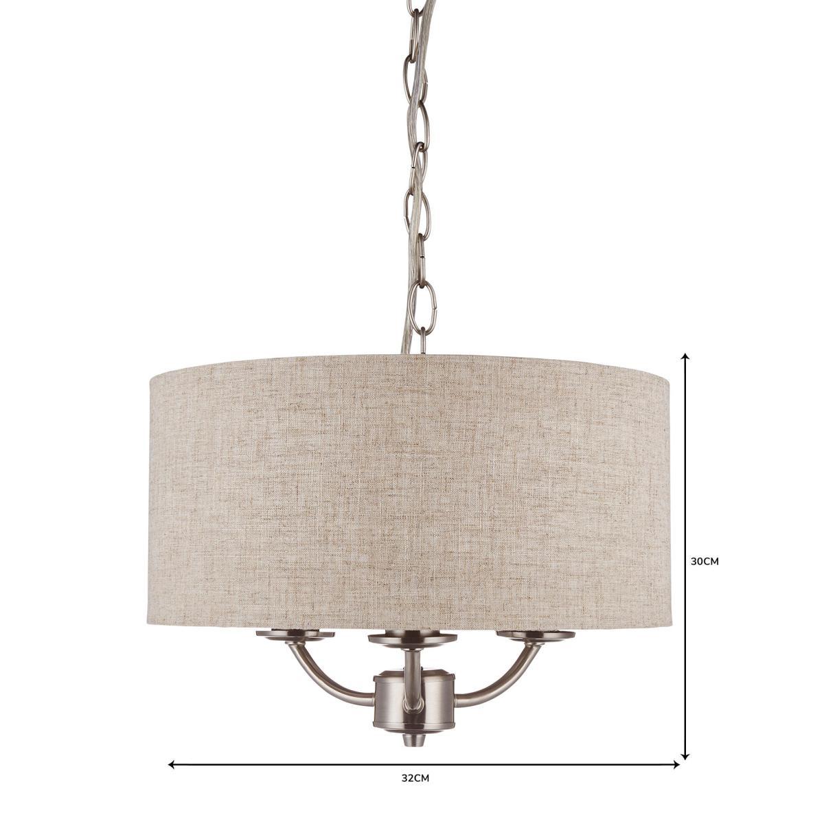 Designed with three light fittings this elegant Preston dimmable ceiling pendant is complete with a natural linen effect shade and suspended from a decorative chain.