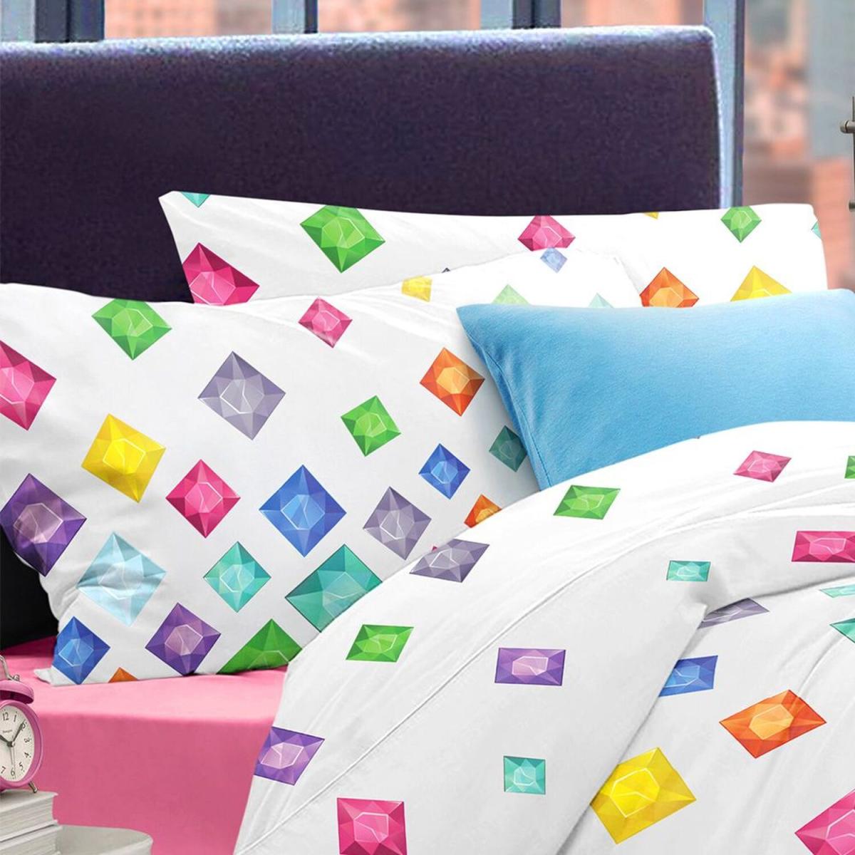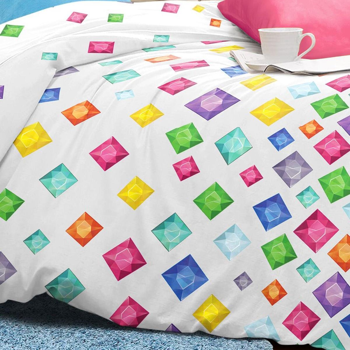 Elevate your bedroom decor to a new level of elegance and charm with our Pretty Falling Jewels Gems Duvet Set. Crafted from a blend of 60% polycotton and 40% polyester, this duvet set offers the perfect combination of softness, durability, and easy care convenience. It is designed to provide you with a comfortable night's sleep while maintaining its pristine appearance even after countless washes. The star of this duvet set is its reversible design, allowing you to switch up your bedroom's look in an instant. On one side, you will find a captivating print featuring a cascade of colourful, shimmering jewels and gems, creating an opulent and regal atmosphere. The reverse side showcases a coordinating pattern that adds versatility and sophistication to your bedding ensemble. The button closure adds a touch of refinement while ensuring your duvet stays securely in place, maintaining your comfort throughout the night. This set includes one pillowcase for the single size and two pillowcases for double and king sizes, creating a cohesive and harmonious appearance for your bed. With its easy care properties, including being machine washable, you can enjoy the luxurious appeal and comfort of the Pretty Falling Jewels Gems Duvet Set with minimal effort. Transform your bedroom into a haven of luxury and beauty with this exquisite duvet set. Add a touch of sparkle and opulence to your nightly routine and embrace the charm of Pretty Falling Jewels Gems.