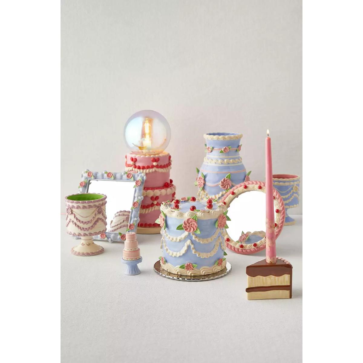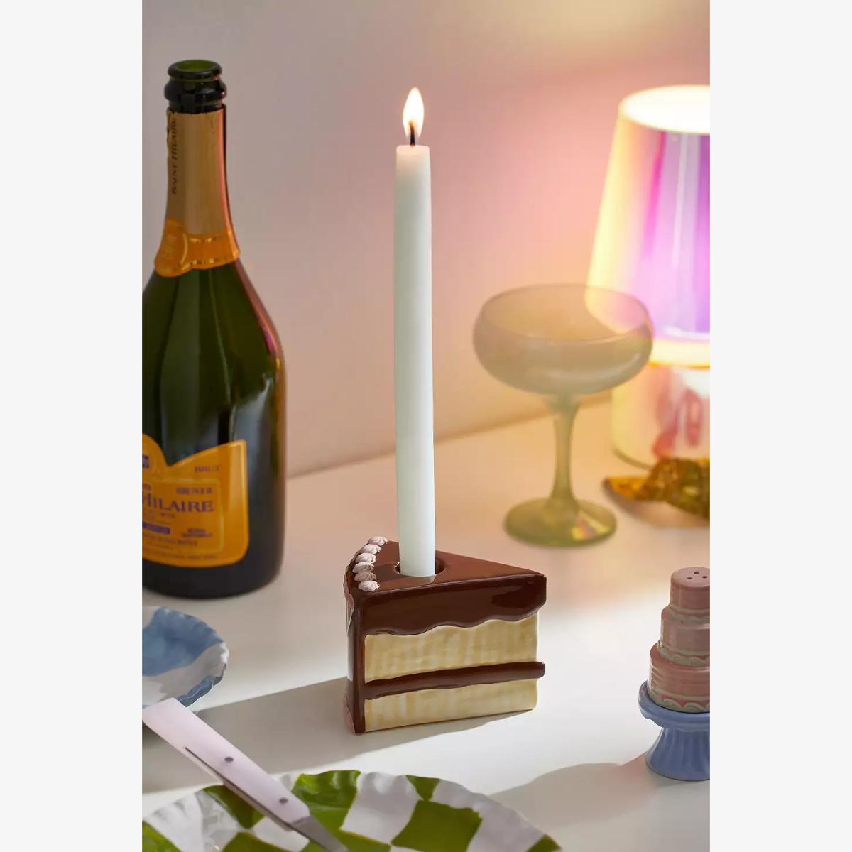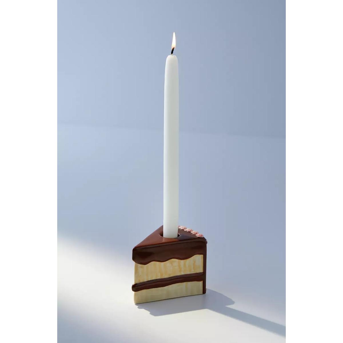 Create a delish display with this stoneware taper candle holder by Pretty Shitty Cakes featuring a cake slice silhouette with frosted detailing allover. Complete with a perforation at the top to support your favorite taper candles. Handmade, each candle holder has one-of-a-kind variations, making it truly unique to you. Available exclusively at Urban Outfitters. **Content + Care** \- Stoneware \- Wipe clean