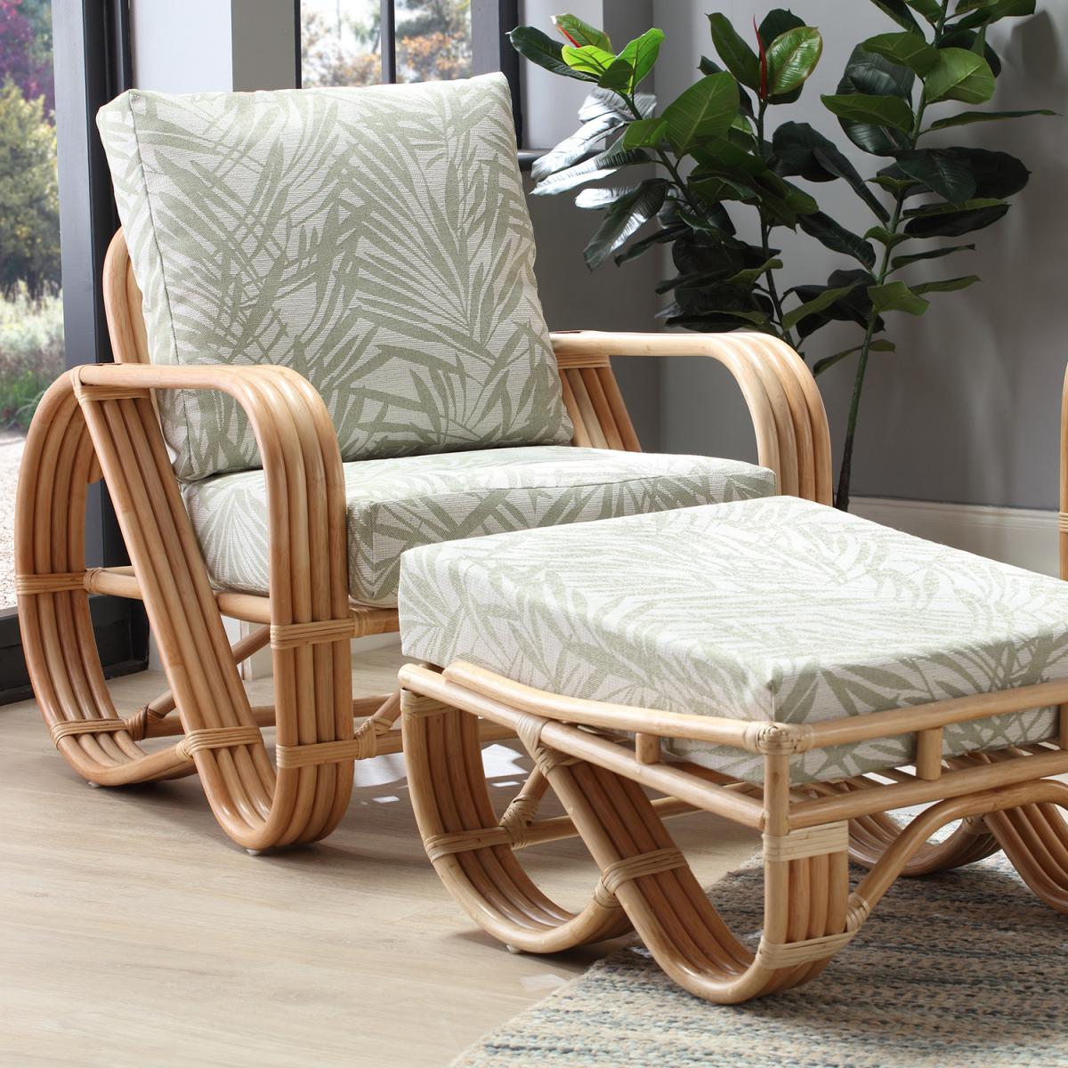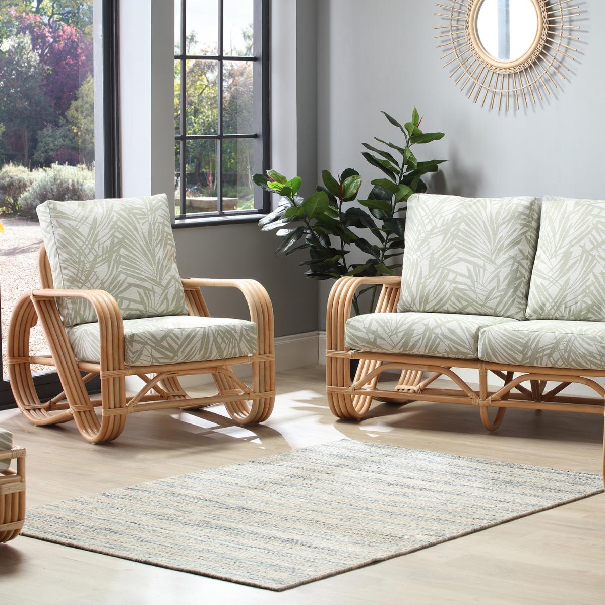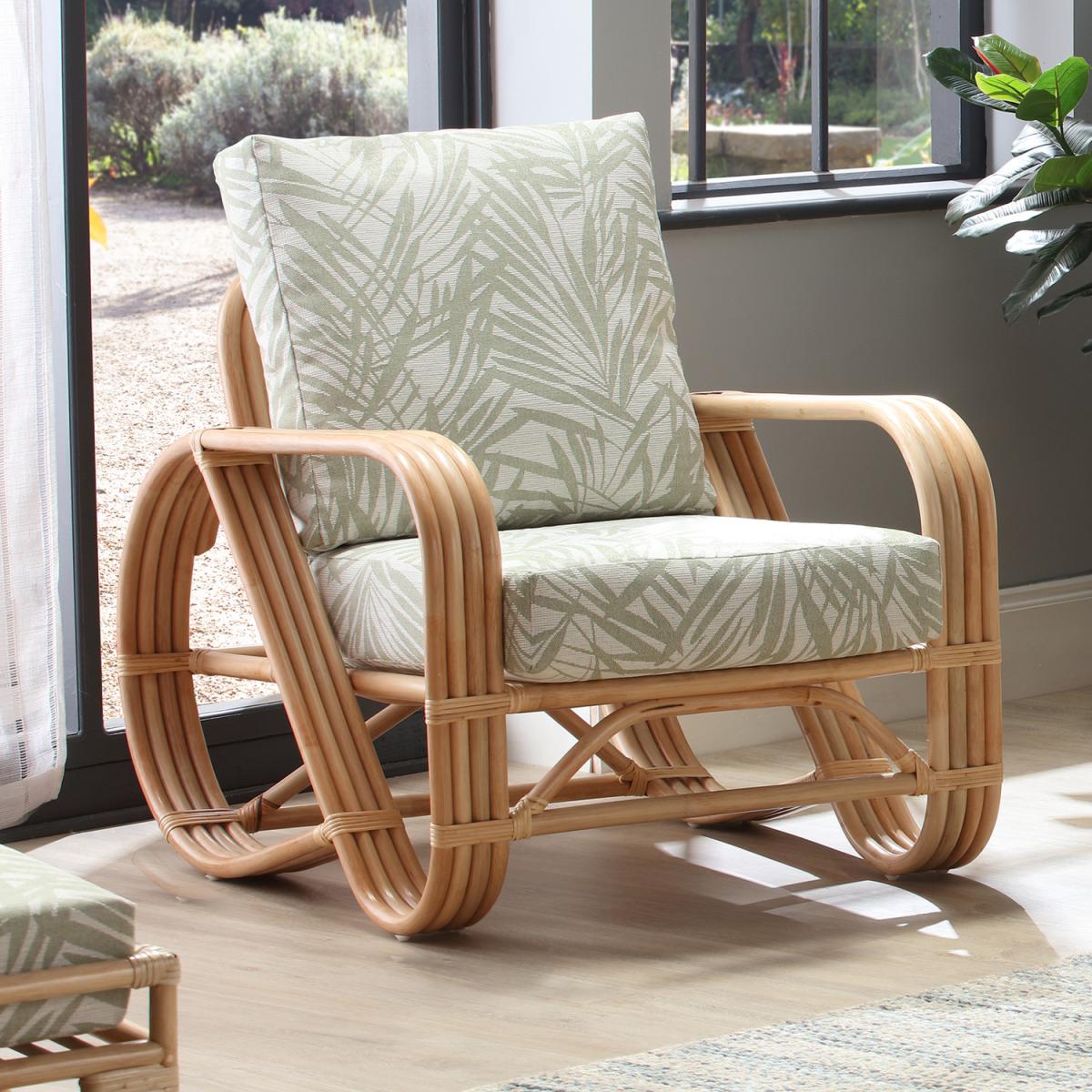 Modern and comfortable, the Pretzel Armchair by Desser is a stylish addition to any household. Different from the traditional indoor cane and rattan furniture, the Pretzel Armchair is available in the contemporary Tropical fabric and fits in with the rest of the Pretzel range impeccably or would look equally as great as a standalone piece. Not only is this a beautiful piece of furniture, but it is also a natural, hand-crafted, ethical product, manufactured from sustainably farmed materials. The Pretzel collection is ideal if you're searching for a new, stylish, and contemporary chair or want to give your conservatory, kitchen area, summer house, or even living room, a real sense of modern elegance. The set includes an armchair and a soft, foam-filled seat cushion with a supportive fibre-filled back cushion that is Dacron wrapped for longevity as well as a comfortable plump finish.