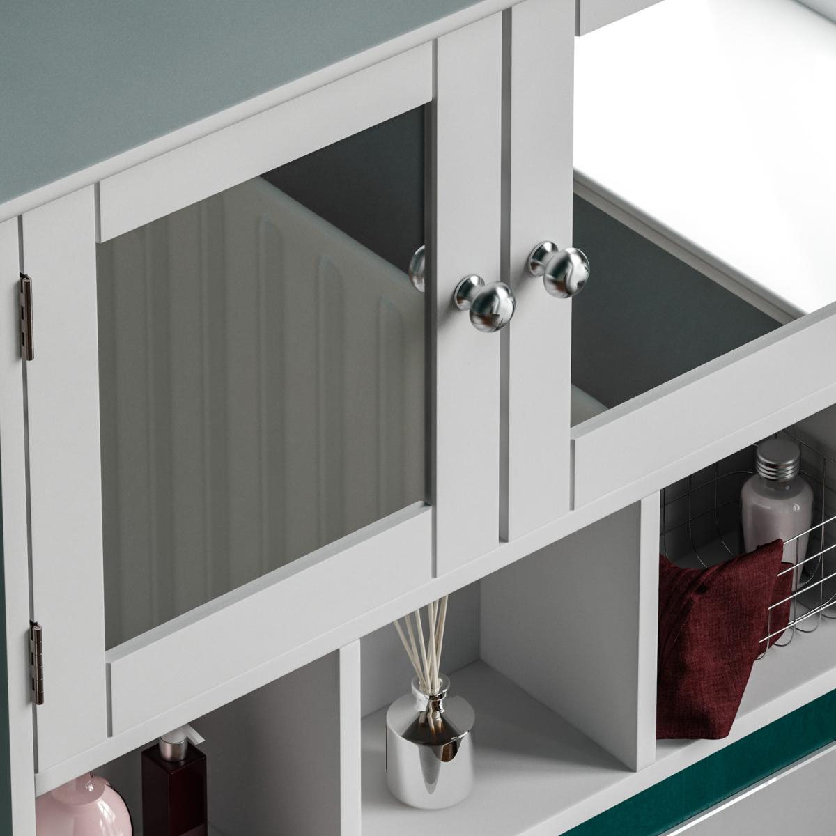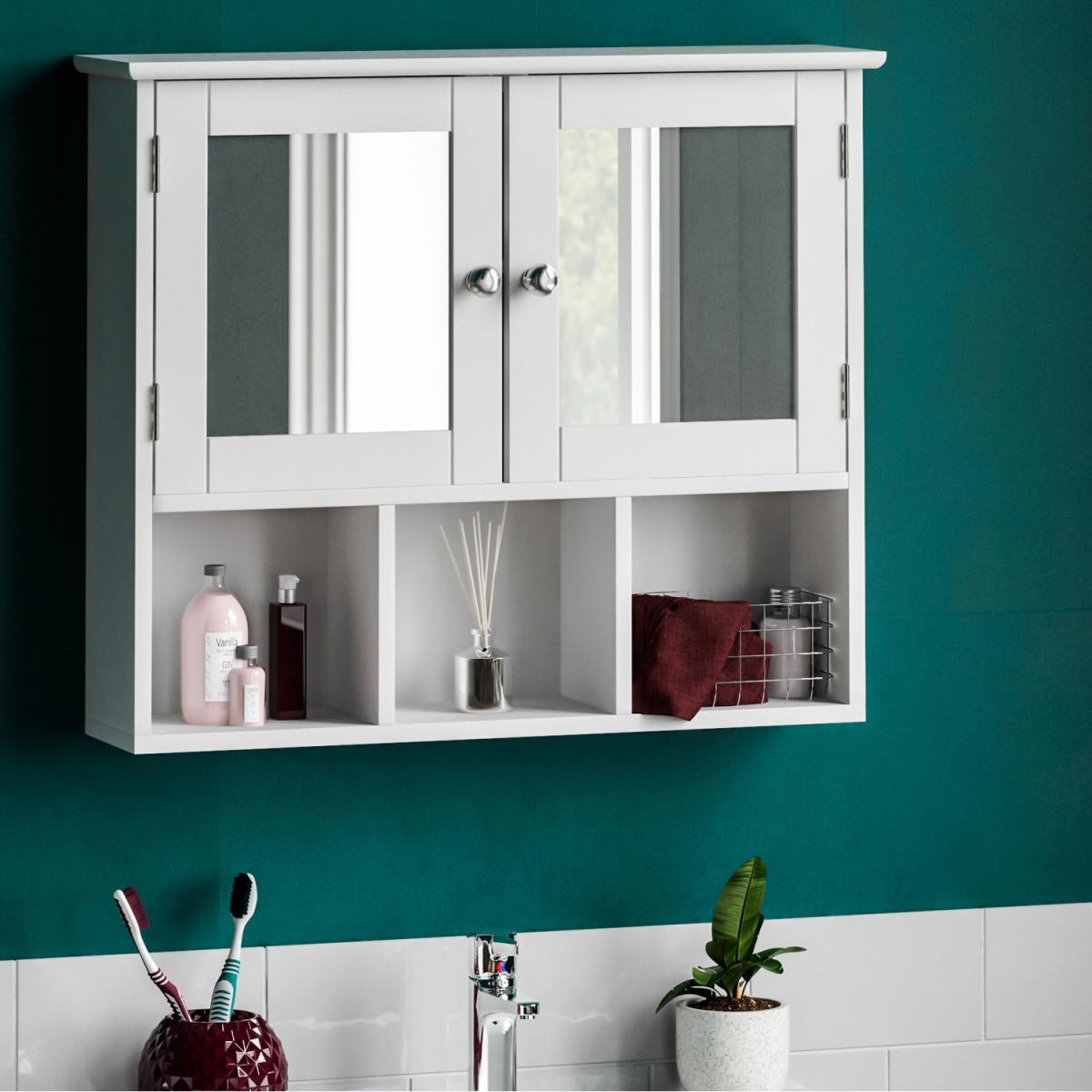 I love this wall cabinet for its clean, streamlined look that works well in a variety of interiors, from modern kitchens to cosy bathroom spaces. The mirror doors add practicality, helping to make smaller rooms feel more open, while the white finish ensures it blends seamlessly with most colour schemes. Stylistically, it pairs beautifully with minimalist or Scandinavian decor, but can also complement more traditional settings with the right surrounding accessories. Practical tips include using the top for everyday essentials that need quick access, and utilising the open shelf below for decorative or storage baskets to keep clutter at bay. Its versatile design ensures it’s both functional and visually unobtrusive.