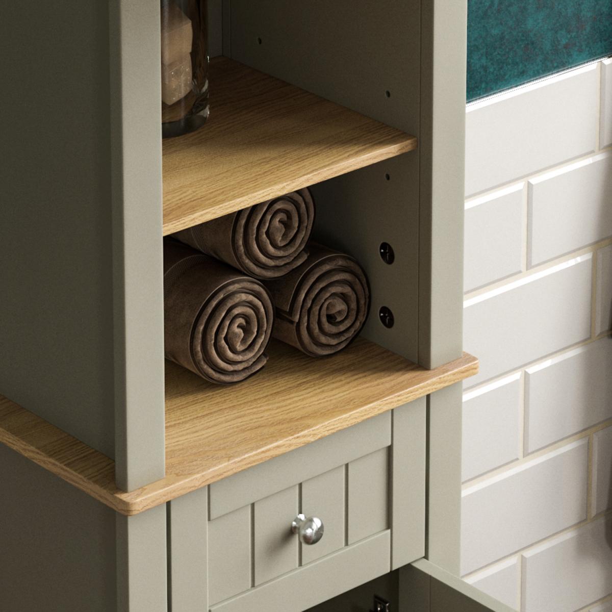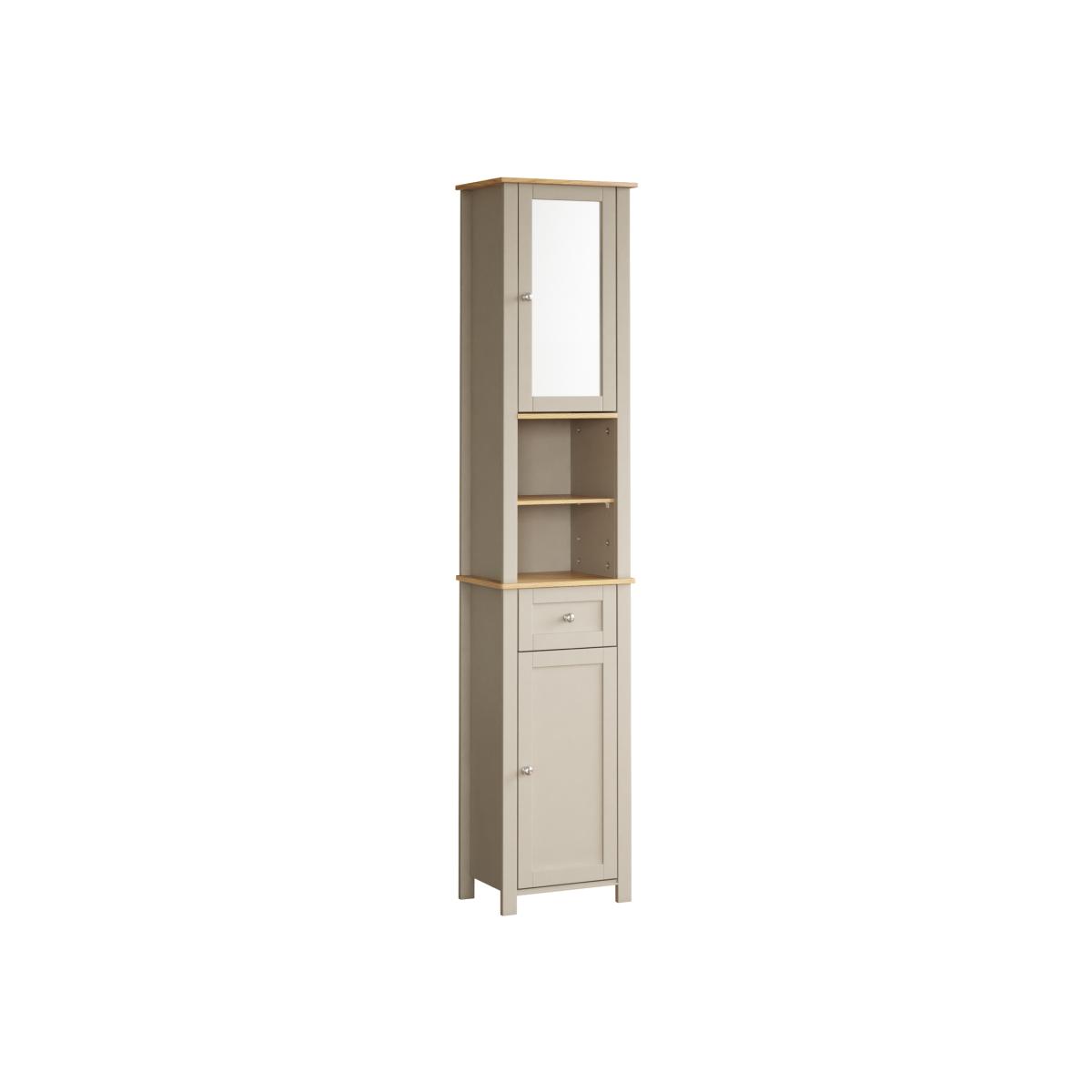 I love the Priano tall cabinet for its versatile design and practical function. Its grey finish makes it a subtle yet stylish addition that works well in both modern and traditional interiors. It’s ideal for kitchens, bathrooms, or even utility spaces, thanks to its mirrored door which adds visual interest and helps maximise light. To style it effectively, consider pairing with light wood or soft-toned accessories to keep the look fresh, or use it as a statement piece in a neutral space. Practical tips include placing decorative baskets or organiser trays on the open shelves for a tidy customised look, while pairing the mirror with wall-mounted hooks or organisers nearby creates a streamlined, functional setup.