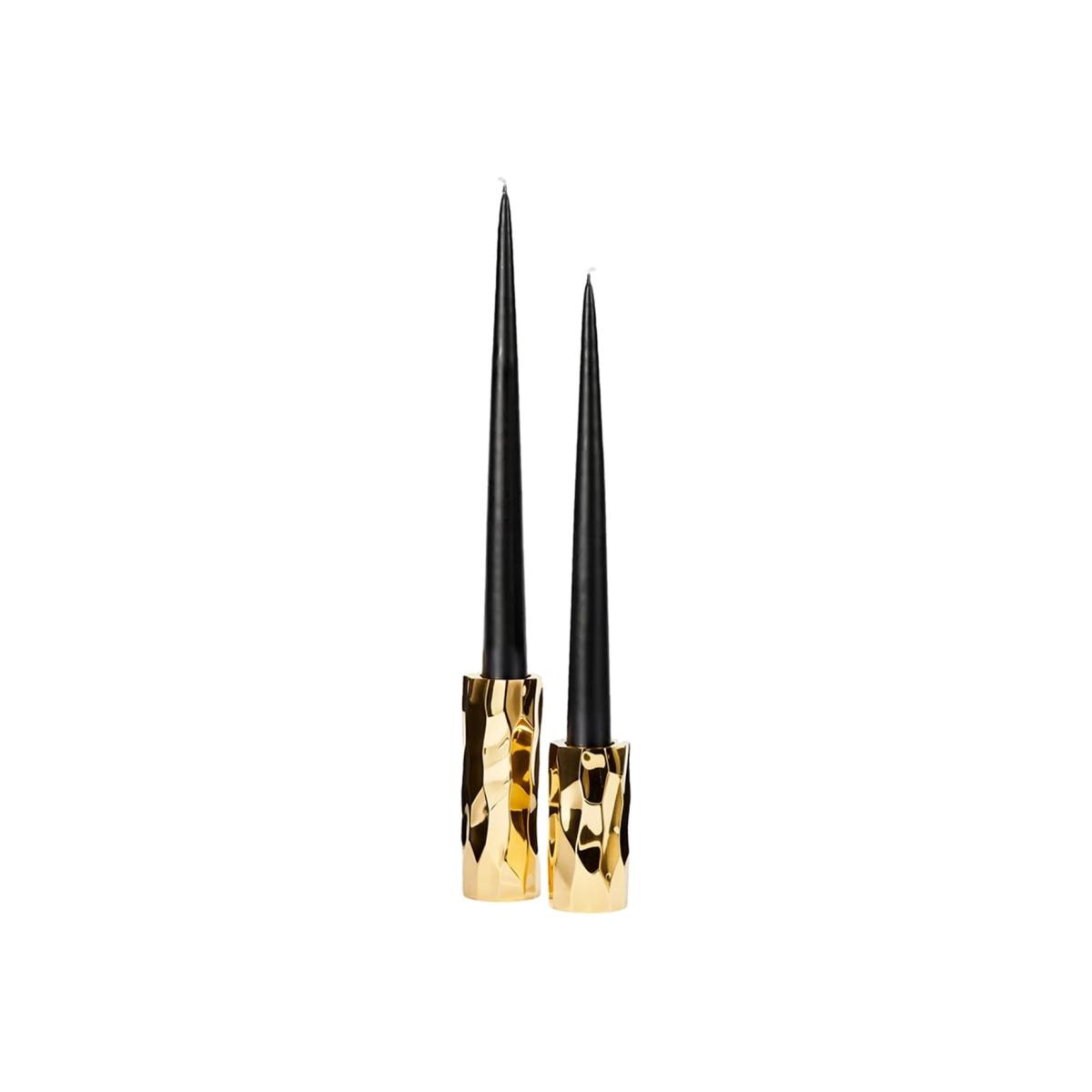I love these Kyoto Candlesticks for their sleek, contemporary design with a touch of luxury thanks to the gold accents. They work exceptionally well in both modern and eclectic interiors, adding a sophisticated yet understated focal point on dining tables, mantelpieces, or sideboards. For practical styling, consider pairing them with tall, slim candles for a clean silhouette, and position them in varied heights to create visual interest. They also look great grouped with other metallic or monochrome accessories, making them versatile for different schemes. These are a refined addition that can elevate minimalistic spaces or provide a contrasting statement within more ornate settings.
