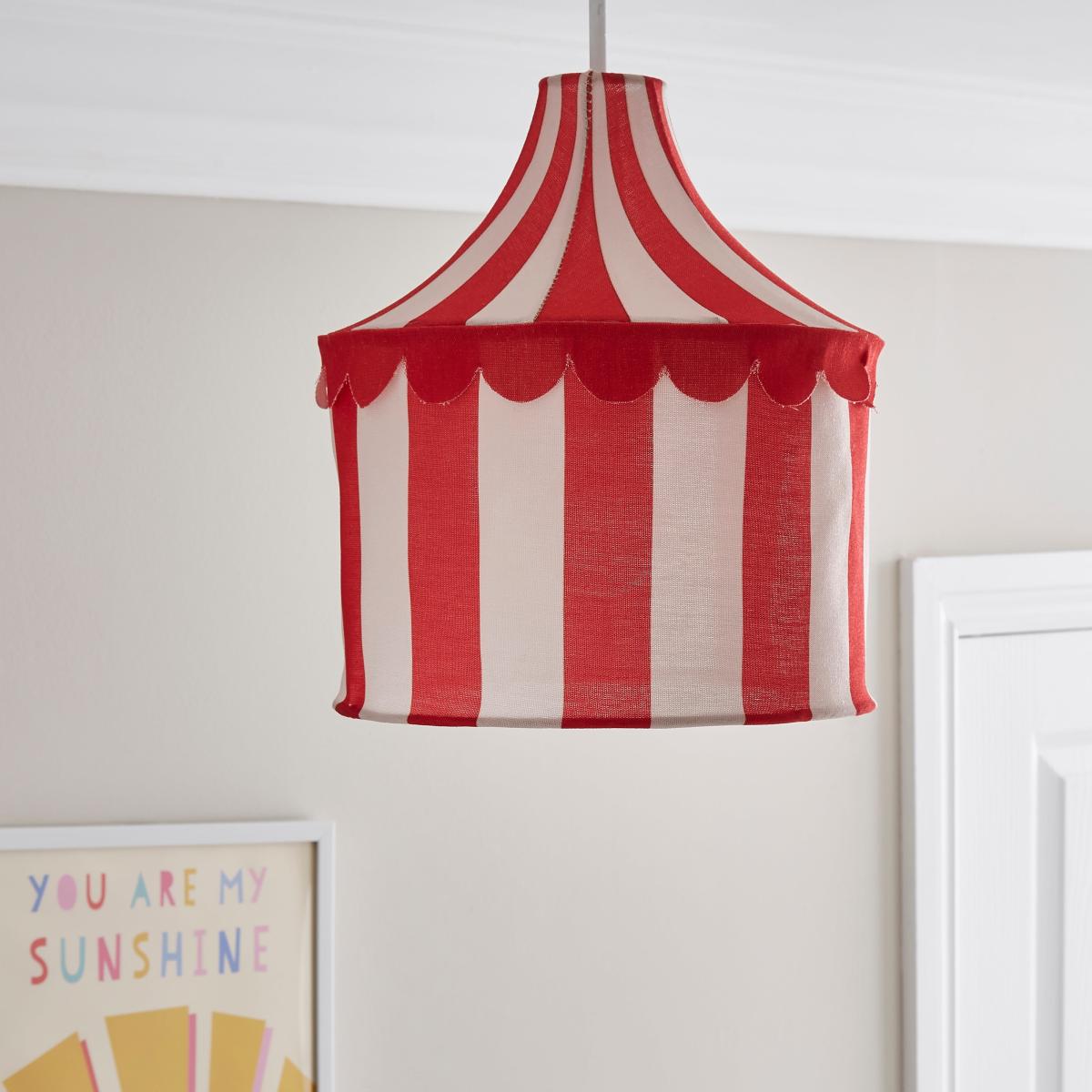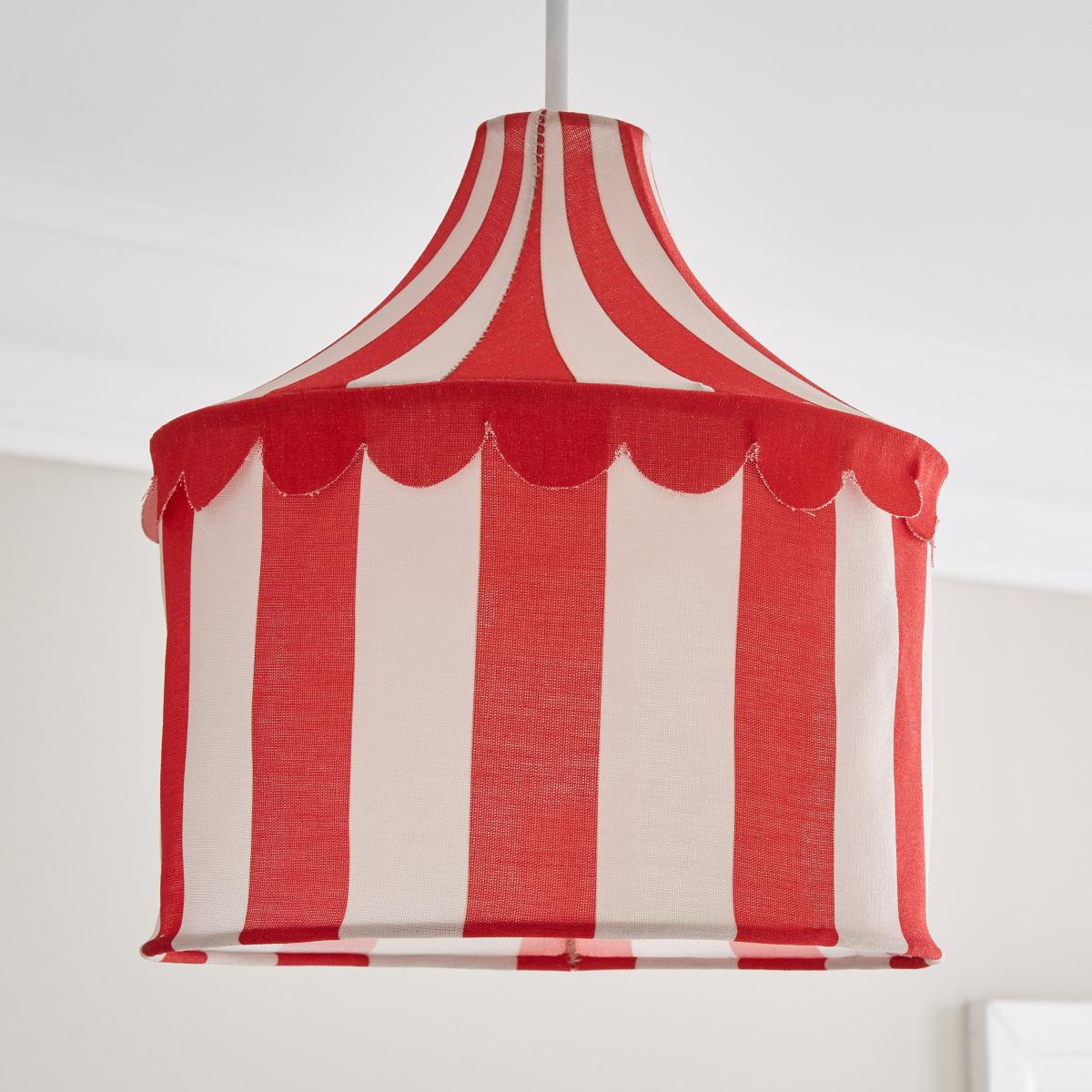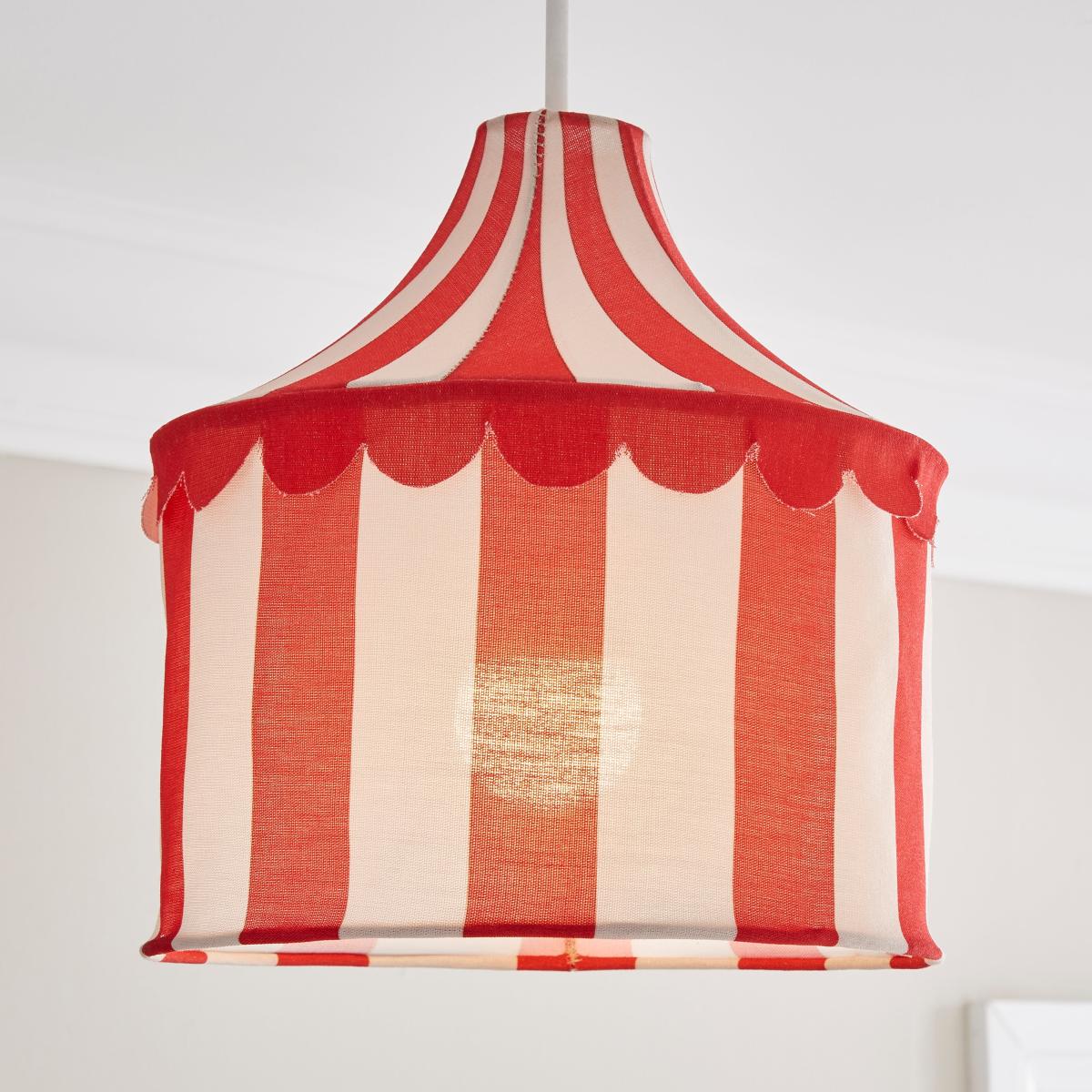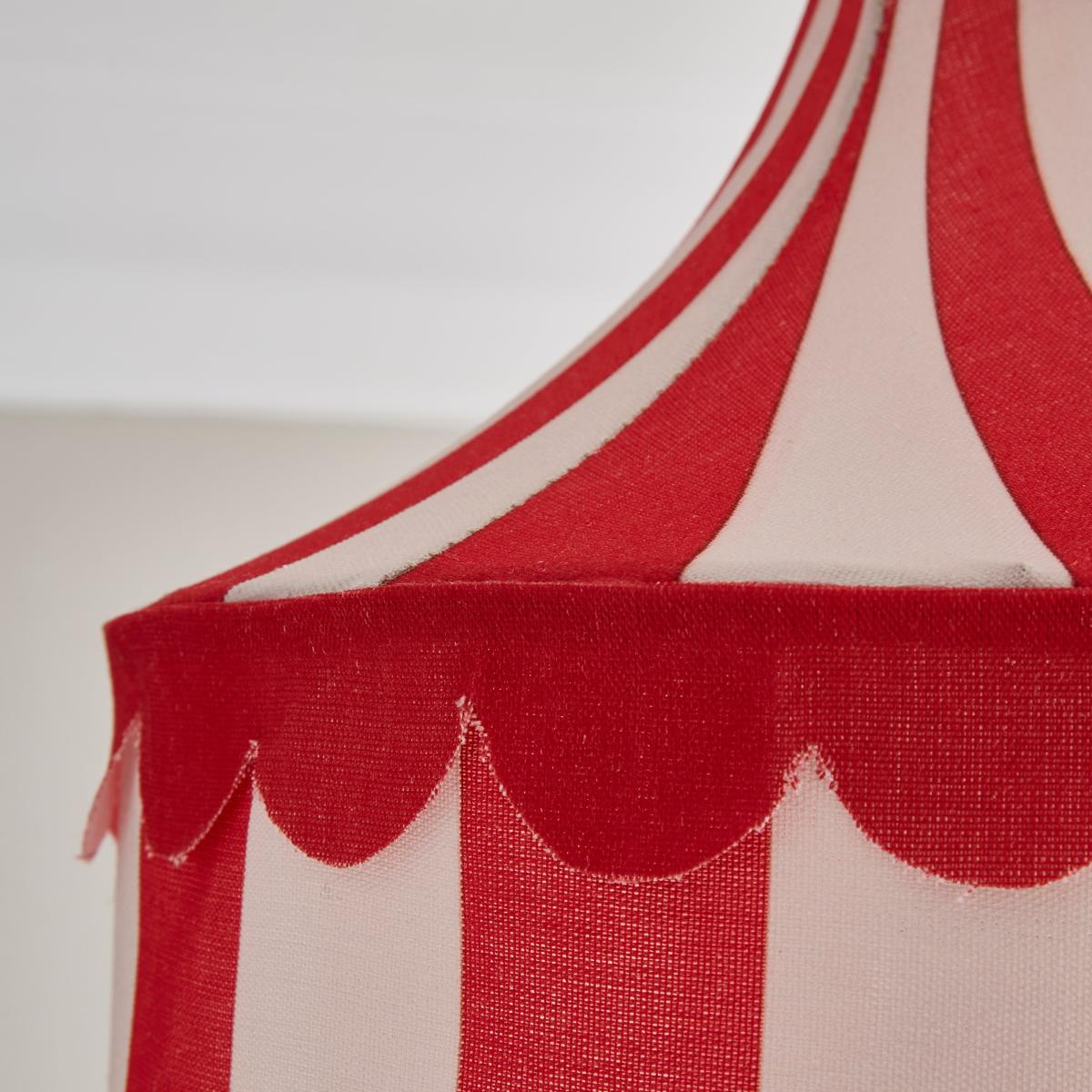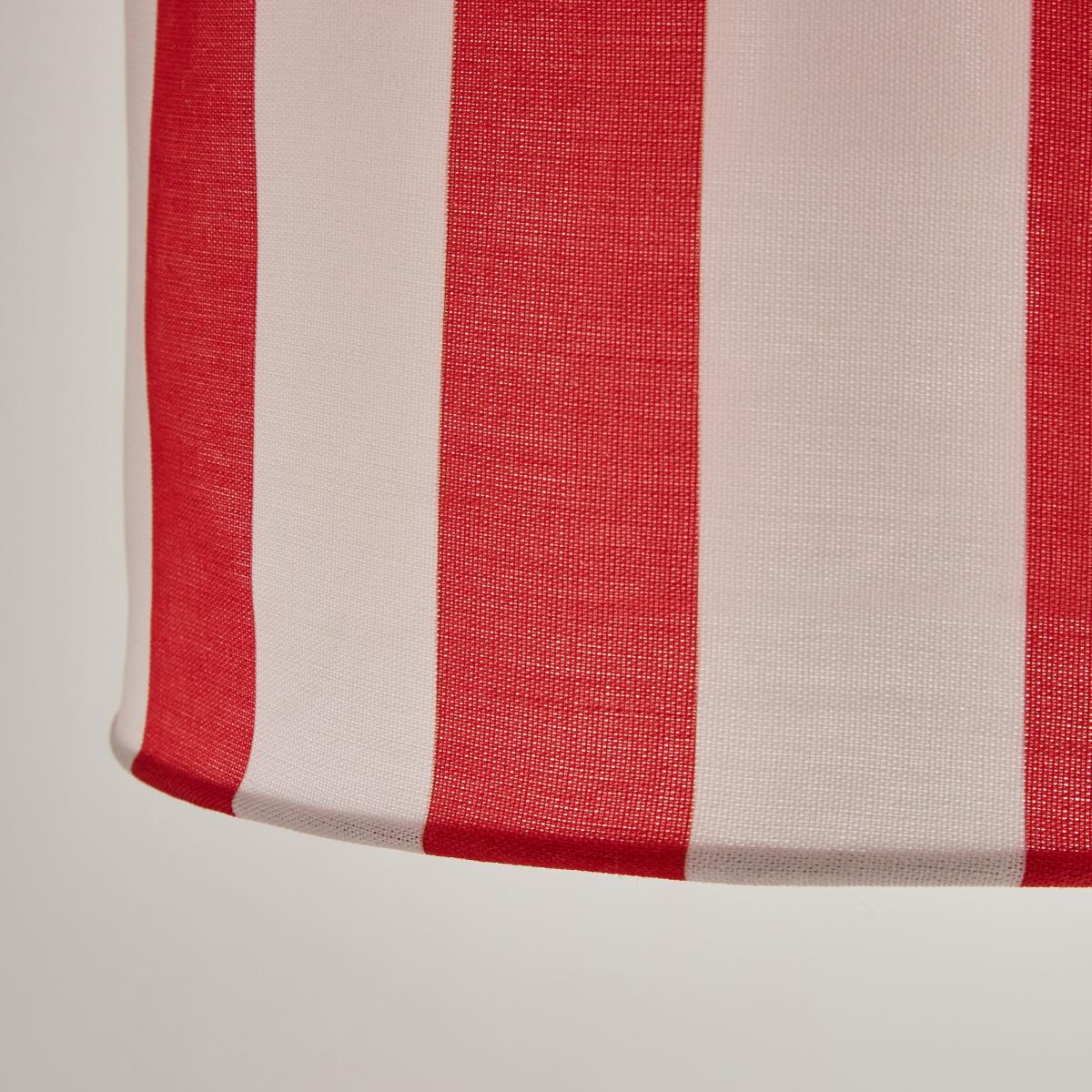 I love this circus-style shade for adding a playful touch to eclectic or vintage-inspired interiors. Its bold red and cream stripe pattern works particularly well in spaces with contrasting colours or mixed patterns, such as a colourful lounge or a cosy reading nook. When styling, consider pairing it with neutral or soft furnishings to let the shade be a feature or balance it with other lively accents for a more vibrant look. It's also great for children’s rooms or creative spaces where a little whimsy is welcome. For practical styling tips, hang it at a moderate height to ensure the pattern remains a focal point and pair it with simple, understated lamp bases to keep the focus on the shade’s cheerful design.