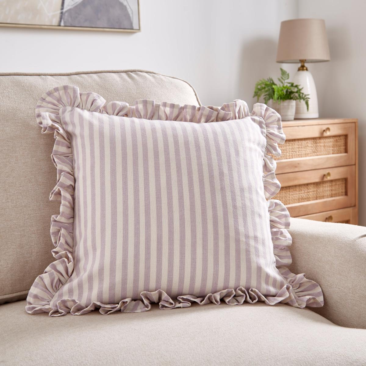 * Comfortable cushion* Add a pop of style to your space* Easy to clean Bring a touch of elegance to your home with our Linford Frill Lilac Cushion! This square cushion features a frilled edge and a lovely lilac colour that will give your room a feminine touch. Filled with recycled polyester and featuring a removable cover that is machine washable, this cushion is both stylish and easy to care for.