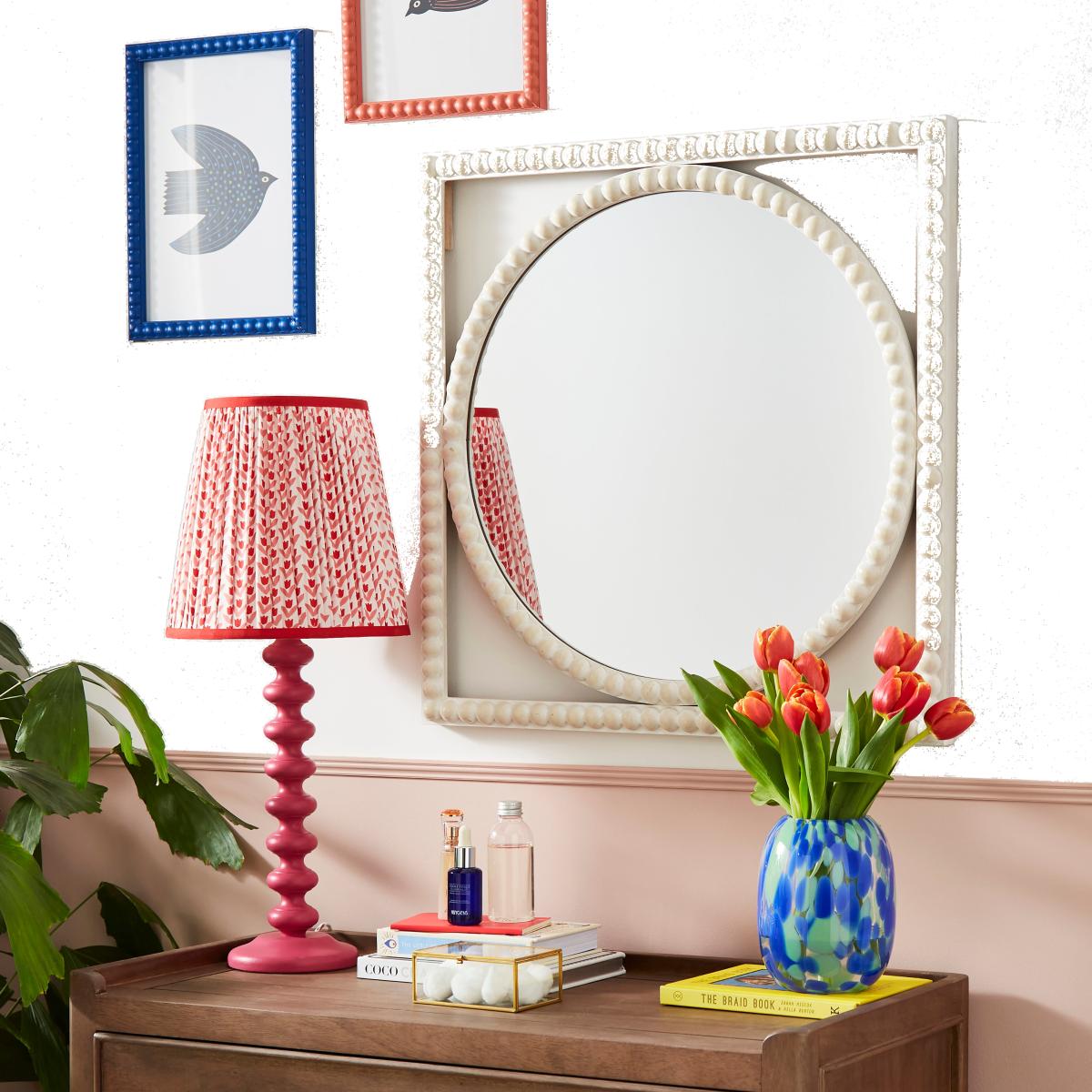 The Pride & Joy natural bobbin wall mirror is a charming, versatile piece that adds a subtle vintage touch to both contemporary and traditional interiors. Its clean white finish and textured frame make it ideal for creating the illusion of space in smaller rooms or hallways, and it pairs beautifully with a variety of colour schemes. I love it used above sideboards or in entryways, where it can brighten and reflect light without overpowering the decor. Practical styling tips include grouping it with bold or colourful wall art for contrast, or keeping it as a standalone statement piece in a minimalist space. Its neutral tone and timeless design make it a smart investment that can evolve with your interior style over time.