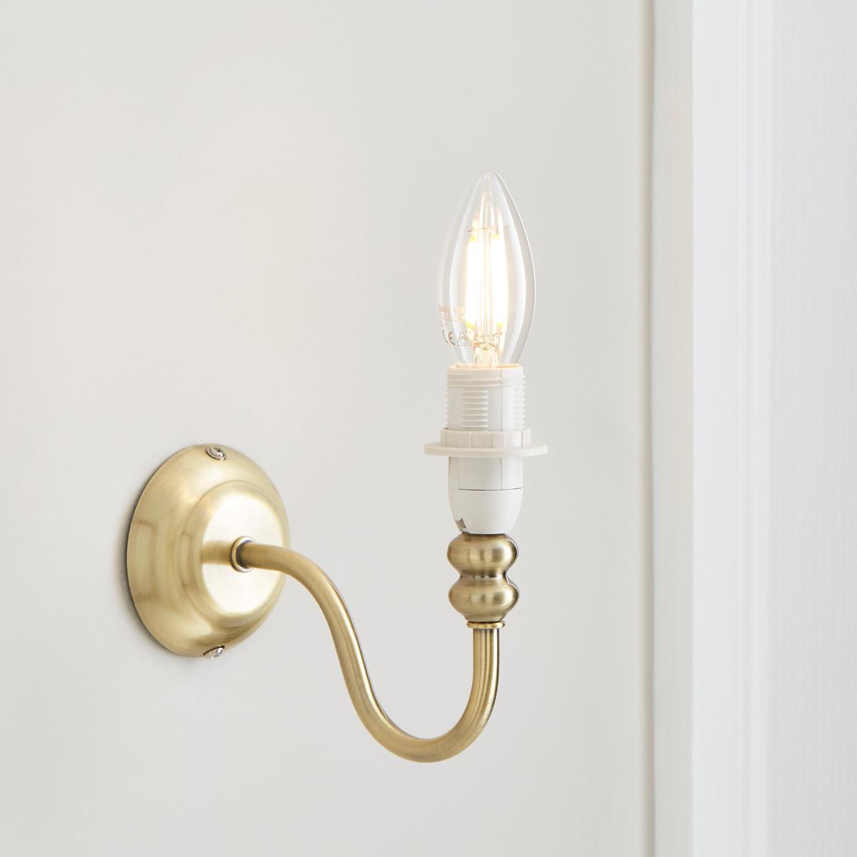 The antique brass finish on this wall light lends a touch of vintage sophistication, infusing warmth and character into your room. One of the standout features of this wall light is its stacked bobble design. The carefully arranged bobbles add a unique texture and visual interest to the piece, making it a true focal point in any room. For your convenience, this wall light is wired directly to the wall, ensuring a seamless and tidy installation. No need to worry about unsightly wires cluttering your space, this fixture provides a clean and streamlined look. Please note that the shade is not included with the wall light, allowing you the freedom to personalise and match it with your existing decor.