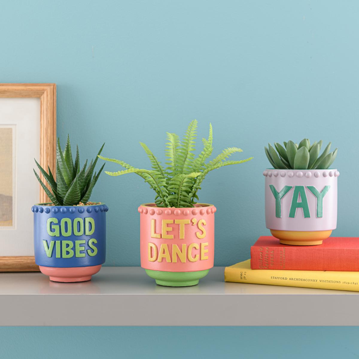I love this little pot because it adds a fresh, modern touch to any space without the maintenance of real plants. The Yay Succulent Pot works particularly well in contemporary and minimalist interiors, where its clean white finish and playful lettering bring a pop of colour and personality. It’s versatile enough for kitchen shelves, office desks, or windowsills-just the thing to brighten up small surfaces. For styling tips, try pairing it with other artificial or real greenery in neutral-toned planters to create a layered, natural look, or place it alongside colourful accessories to make the lettering really stand out. It’s a practical choice, especially in spaces where natural light is limited or where low-maintenance decor is preferred.