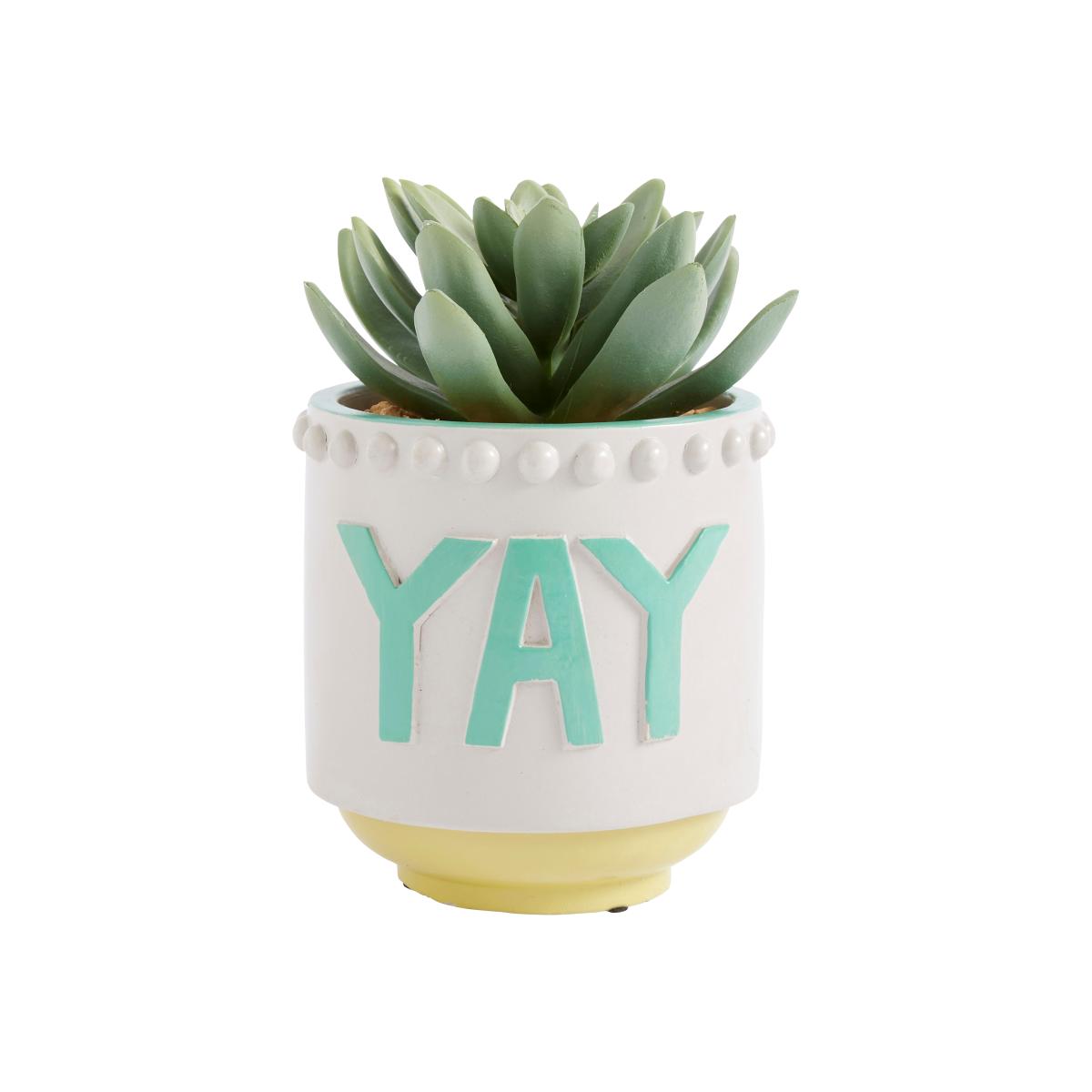 Boasting an encouraging "YAY" embossed on the vessel's base, this Pride & Joy Succulent Pot is the perfect way to add a pop of colour, and greenery, to your home. Low maintenance, all this realistic artificial succulent requires is a simple wipe down to keep it looking fresh and vibrant.