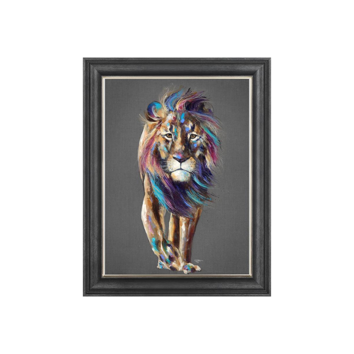 The Pride Framed Art commands attention from all. Pops of colour highlight the powerful lion’s frame, his eyes gazing right into yours. Why you'll love it. Exhibit the prowess of the lion in your home. The subject and bold palette make for a stunning focal point. The amazing print quality captures every brushstroke and detail. Reproduced from original artwork by Louise Luton. Housed in an elegant dark grey frame with champagne silver detailing. Hand finished with care for Furniture Village. What you need to know. A paper print on an MDF back board. Metal hanging fitting with a nylon cord. Hand-finished with an acrylic gel. Made in the UK. Dimensions. Width: 76 cm (38 in). Depth: 5 cm (2 in). Height: 96 cm (38 in).