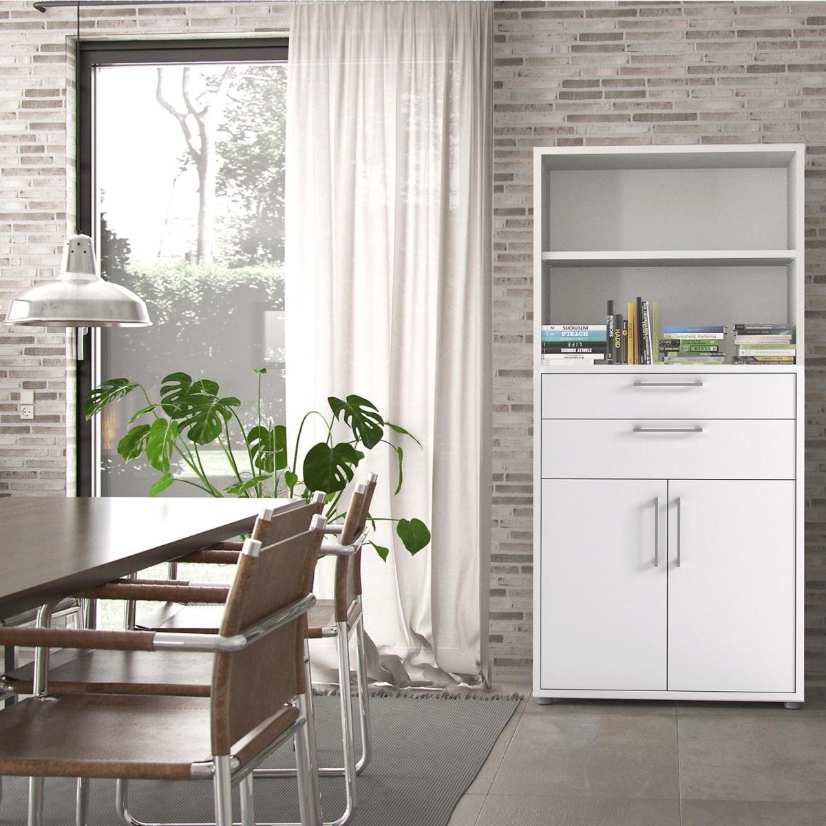Prima 2-Shelf 2-Drawer 2-Door Bookcase - White