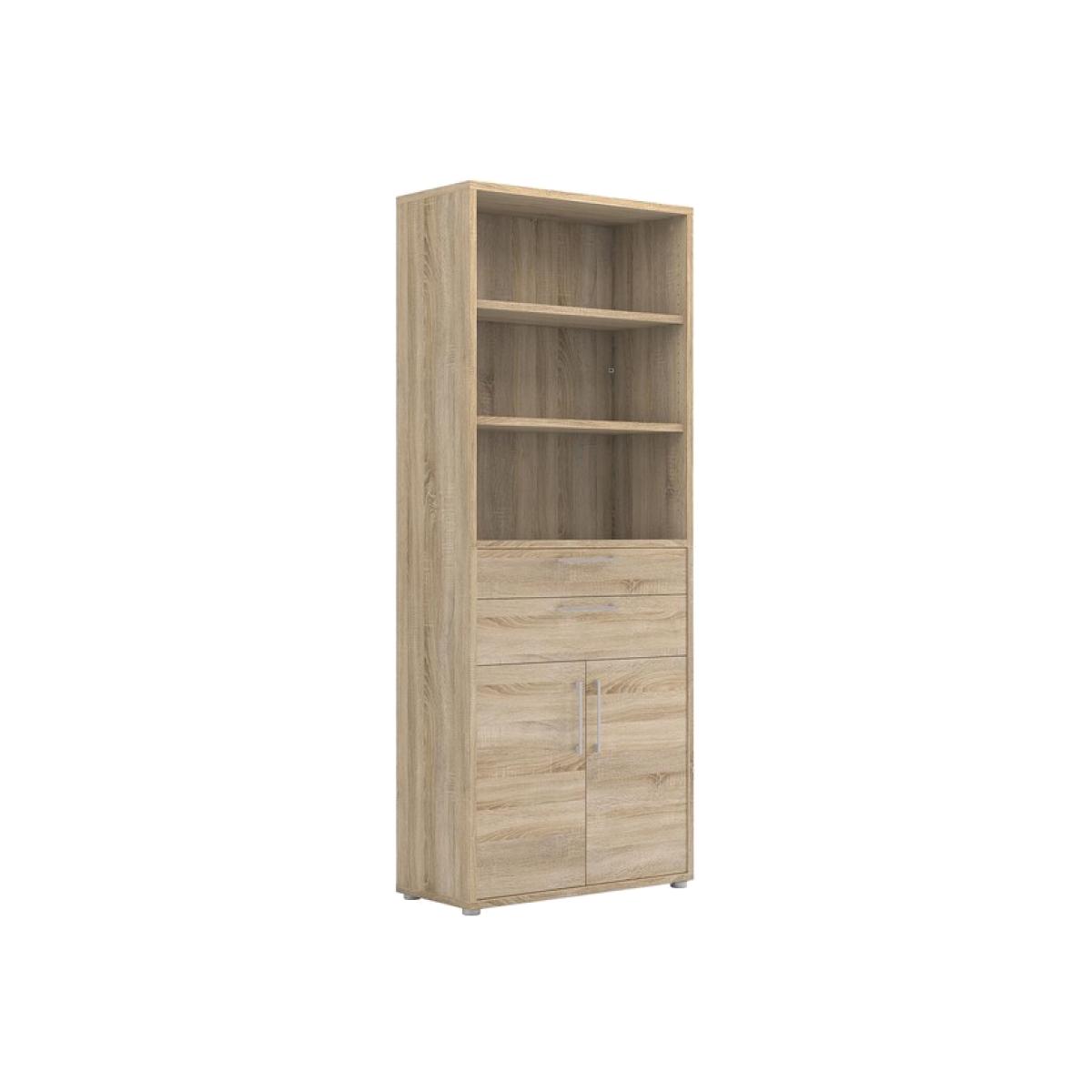 The Prima 3-Shelf 2-Drawer 2-Door Bookcase is ideal for the home office but versatile and stylish enough to be used throughout the home in any room you choose. Featuring plenty of storage solutions with the included shelves, cupboards, and drawers, you can keep everything you need in one convenient place. Finished with a high-quality laminated board that's resistant to damage and scratches, moisture and high temperature, it's a convenient piece for any home.