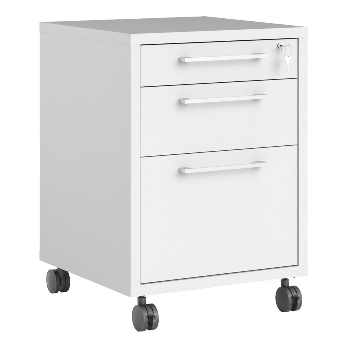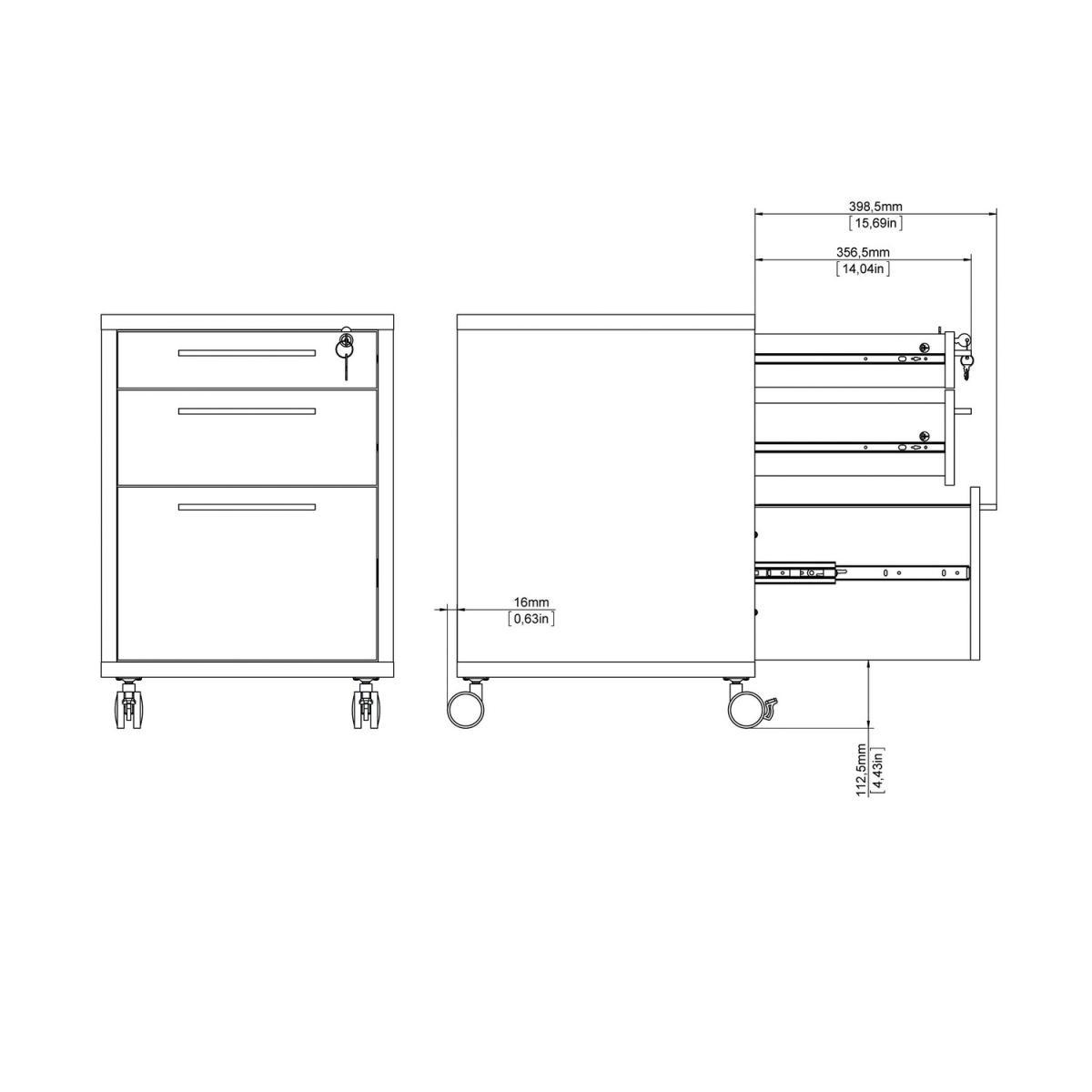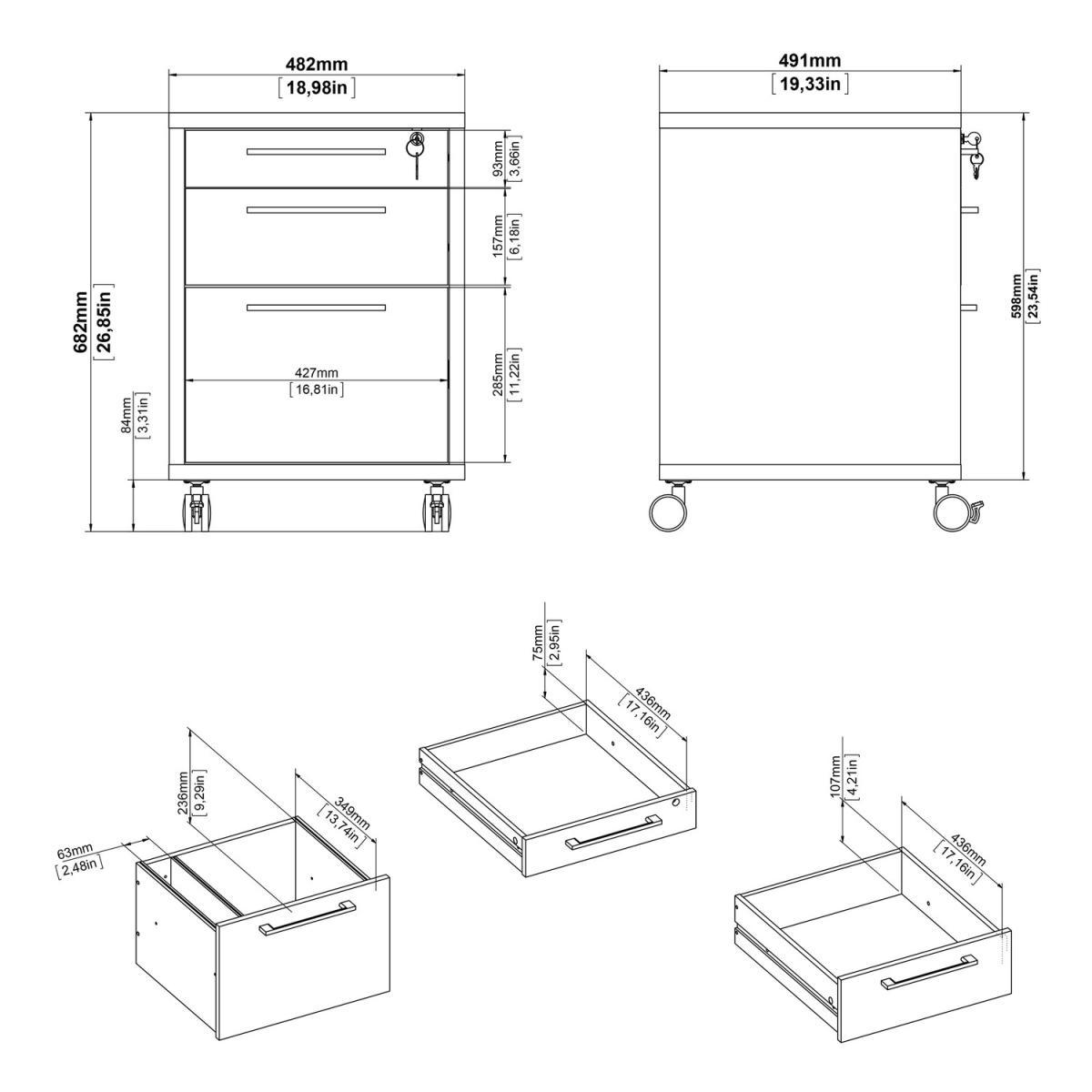 Dimensions H68.2 x W48.2 x D49.1 cm. The Prima mobile file cabinet is the perfect addition to any home office. It fits into any small space perfectly and is easily moved around. This cabinet is perfect for storing all of your office essentials with 3 drawers including a locking drawer at the top and a larger filing drawer. Additional products are available in the Prima range. Features. High quality laminated board (resistant to damage and scratches moisture and high temperature)Perfect for small spaces. Stylish and timeless. Easy self-assembly. Made from PEFC Certified sustainable wood. Made in Denmark..