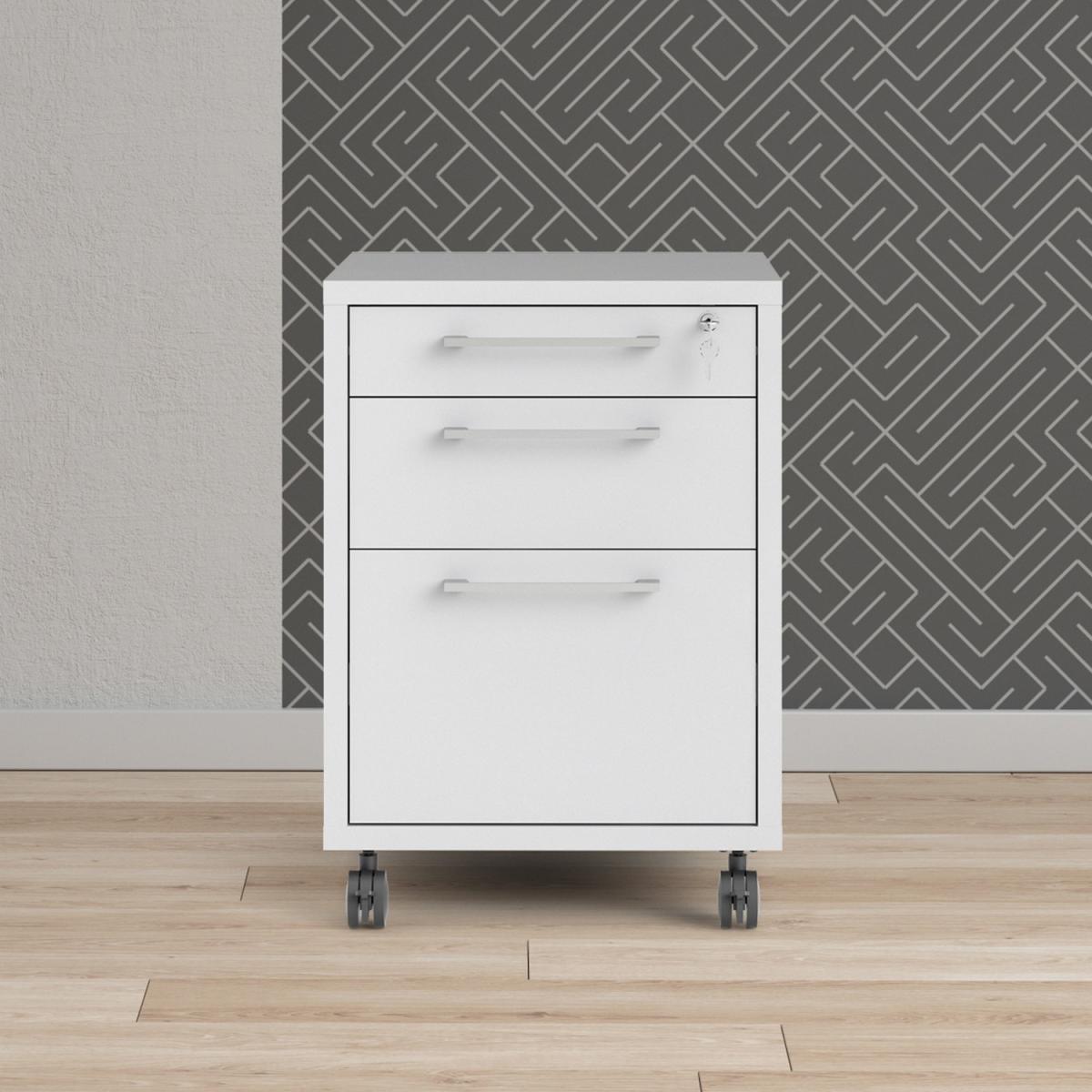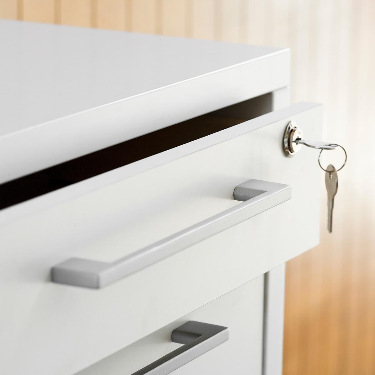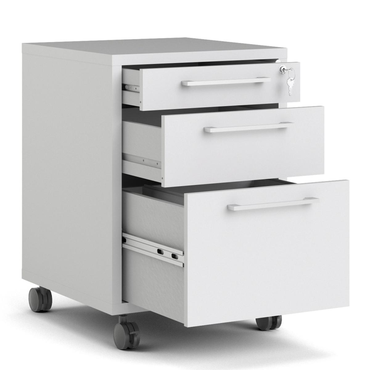Dimensions H68.2 x W48.2 x D49.1 cm. The Prima mobile file cabinet is the perfect addition to any home office. It fits into any small space perfectly and is easily moved around. This cabinet is perfect for storing all of your office essentials with 3 drawers including a locking drawer at the top and a larger filing drawer. Additional products are available in the Prima range. Features. High quality laminated board (resistant to damage and scratches moisture and high temperature)Perfect for small spaces. Stylish and timeless. Easy self-assembly. Made from PEFC Certified sustainable wood. Made in Denmark..