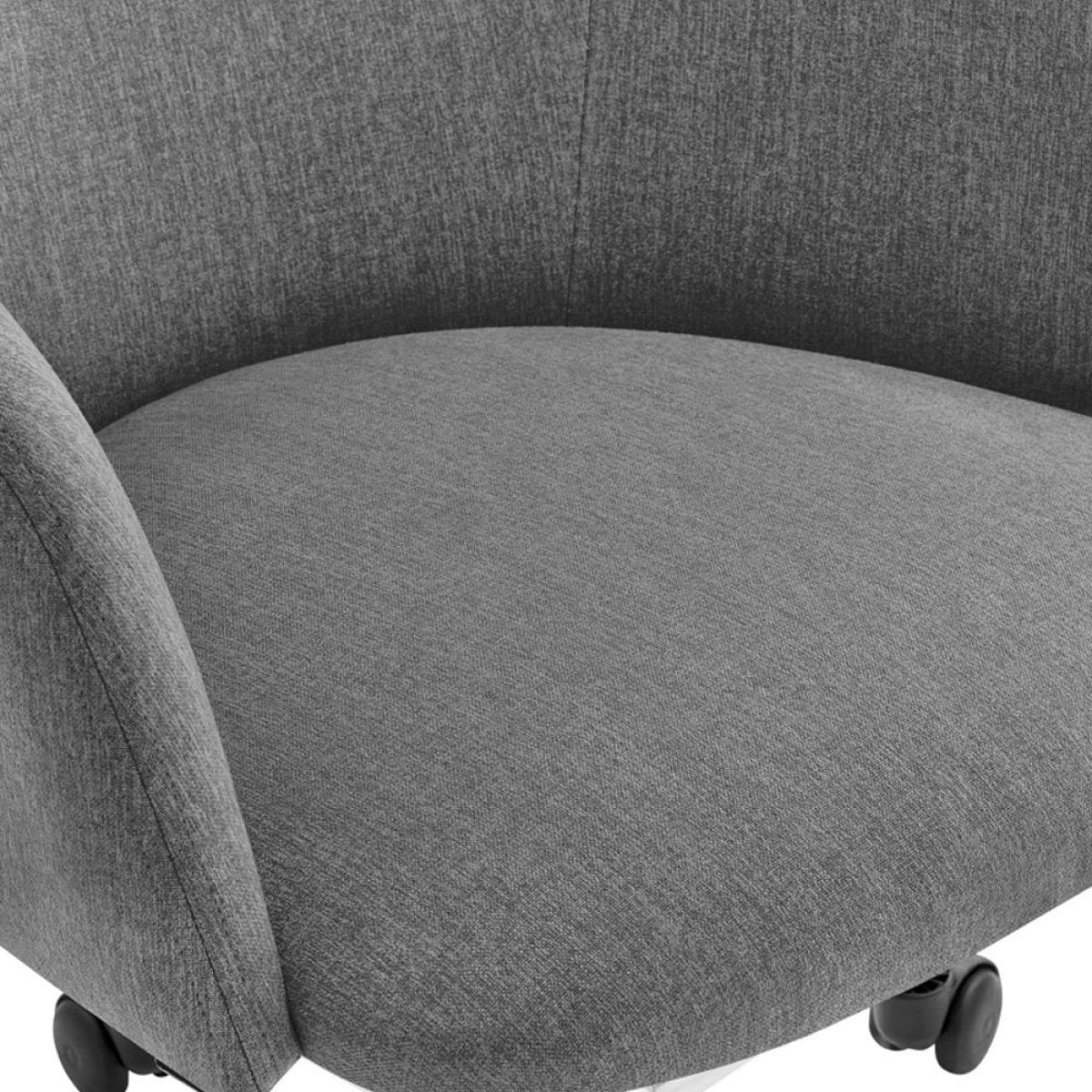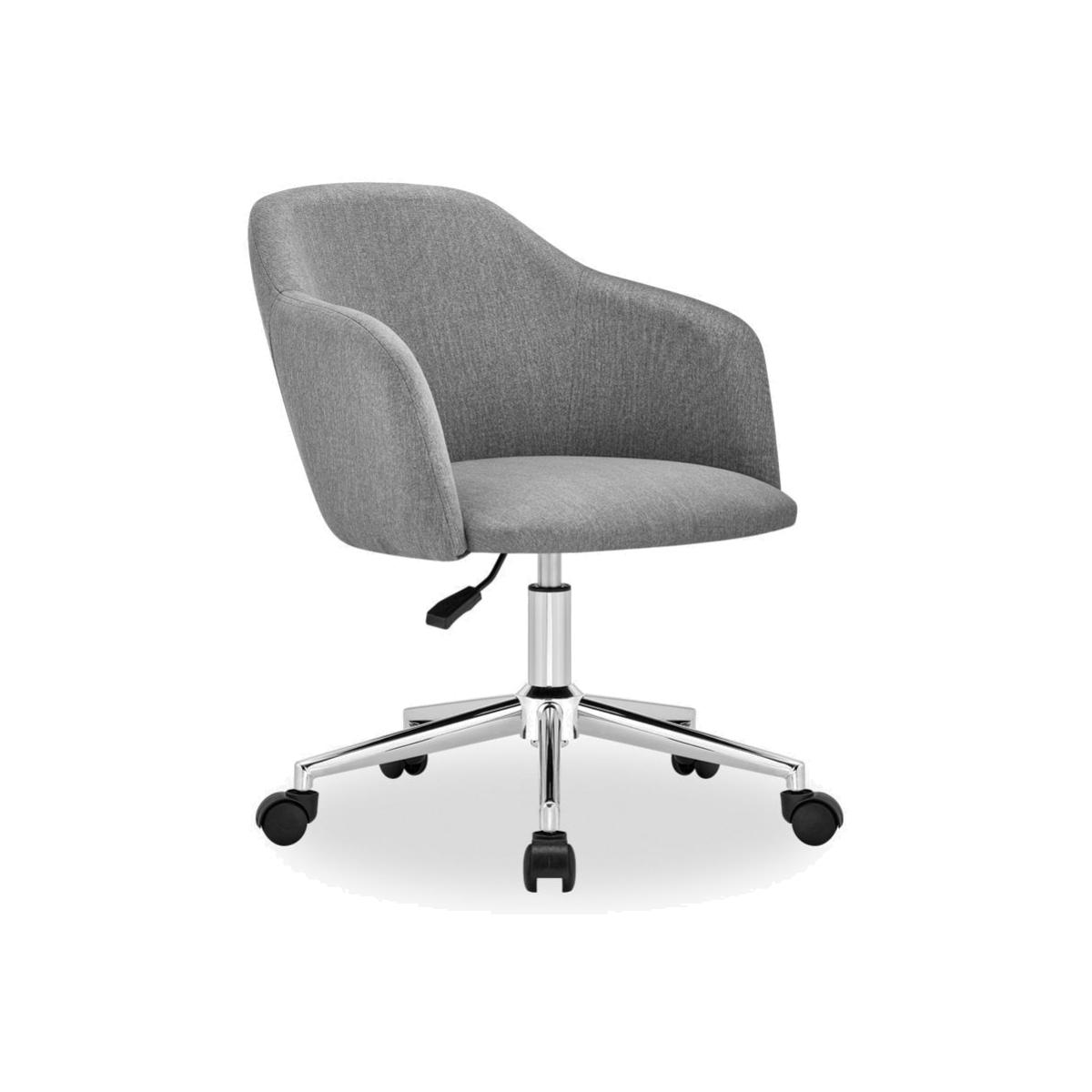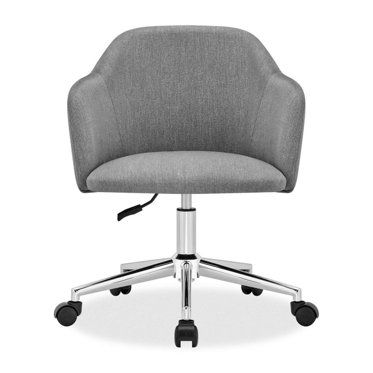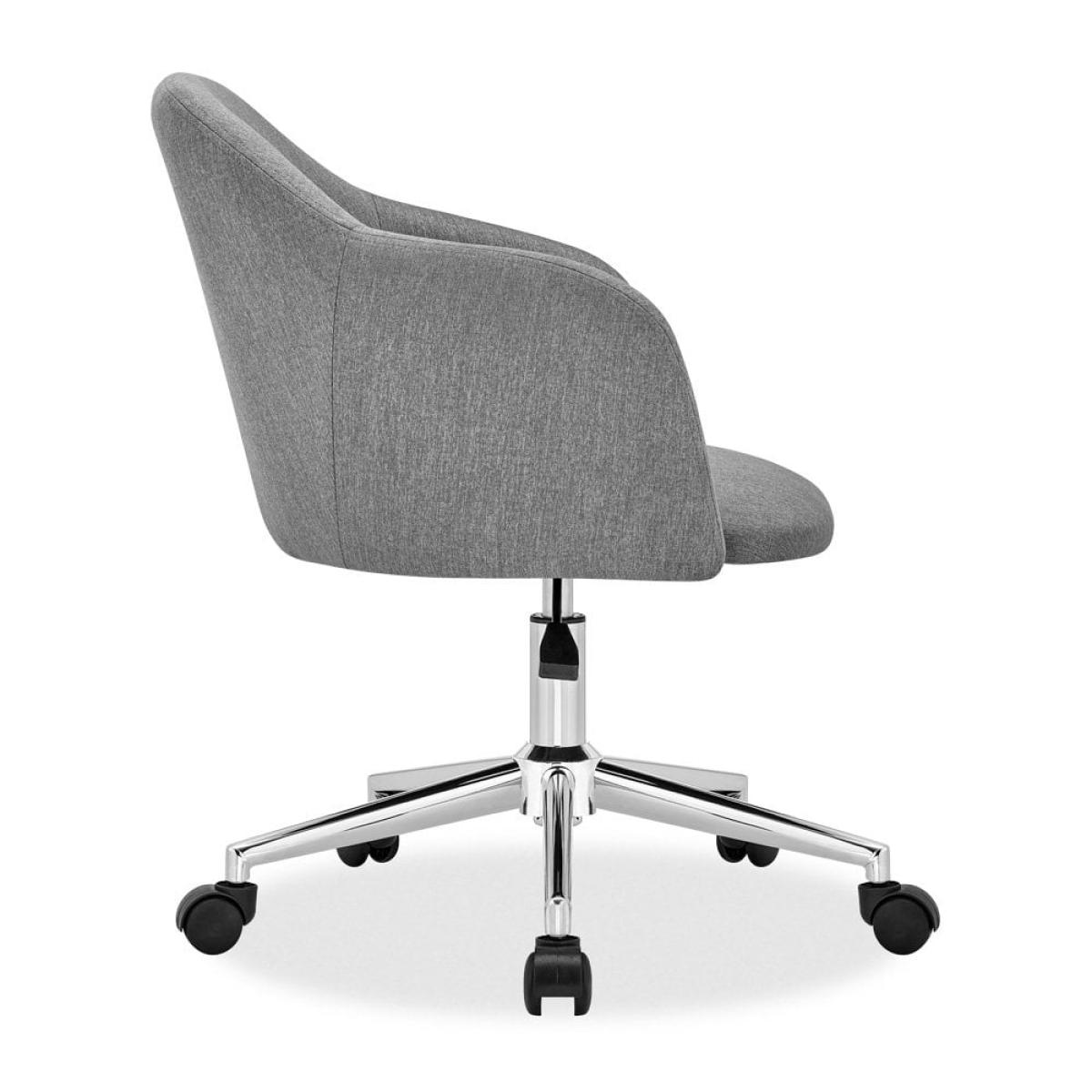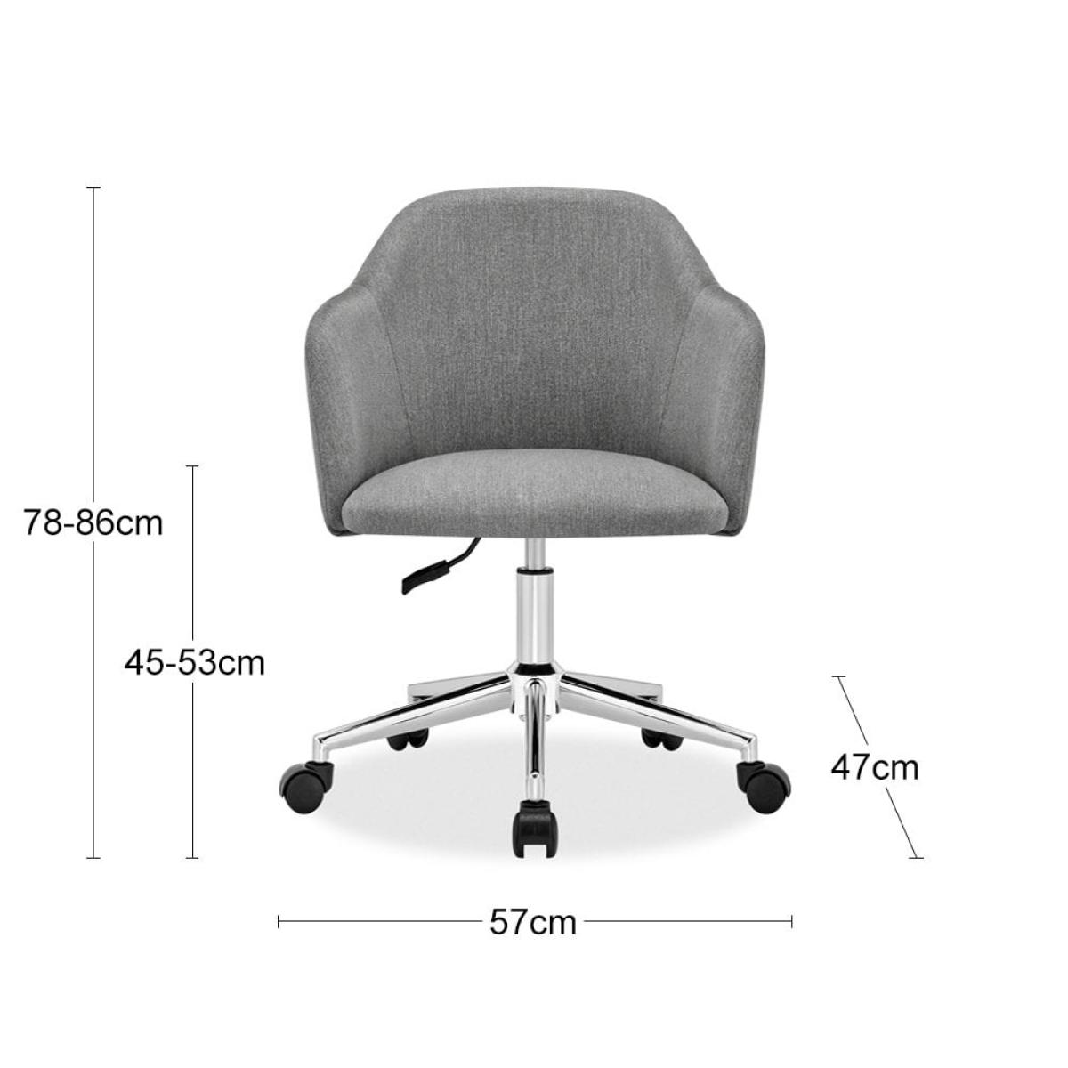 I love this office chair for its clean, contemporary silhouette and neutral grey tone, making it versatile across a range of interiors. It works particularly well in modern, minimalist spaces or those with a softer, Scandinavian aesthetic. The armrests add comfort for long working hours, while the adjustable base ensures practicality. To style around it, consider pairing with light wood or monochrome desks to enhance its understated elegance, and add a splash of colour through accessories or a vibrant rug to avoid a clinical look. It's a functional piece that can elevate a home office or corporate setting with ease.
