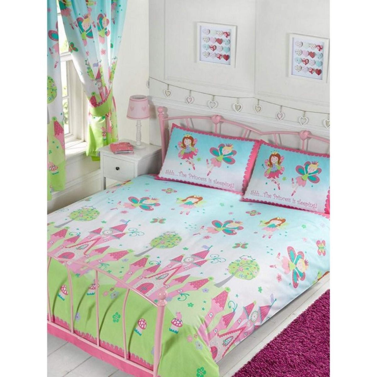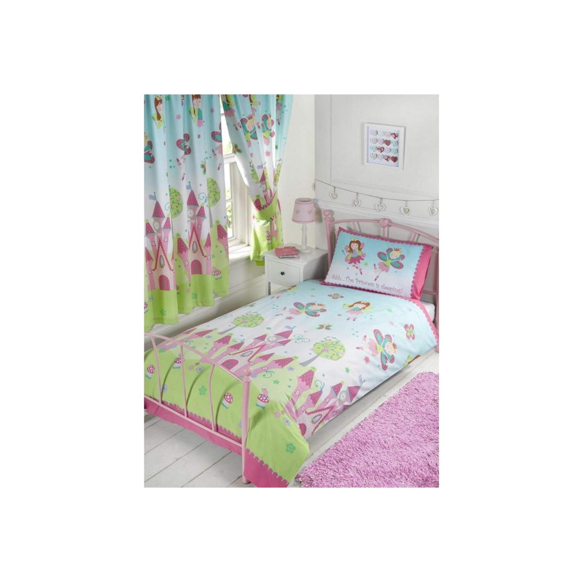 If you are looking for a bedding set fit for a princess, this is the design for you! It features lots of pretty princesses in their magical fairy kingdom with the words 'Shhh.... The Princess Is Sleeping' on the pillowcase. Made from a polycotton blend, this set is suitable for machine washing and tumble drying on a low setting.