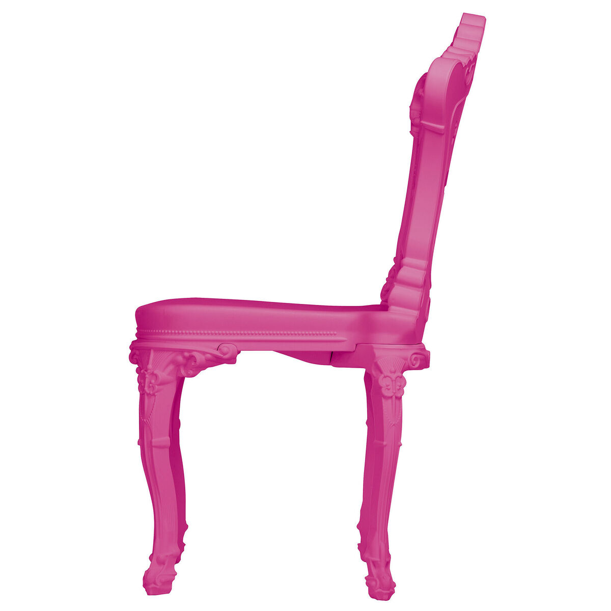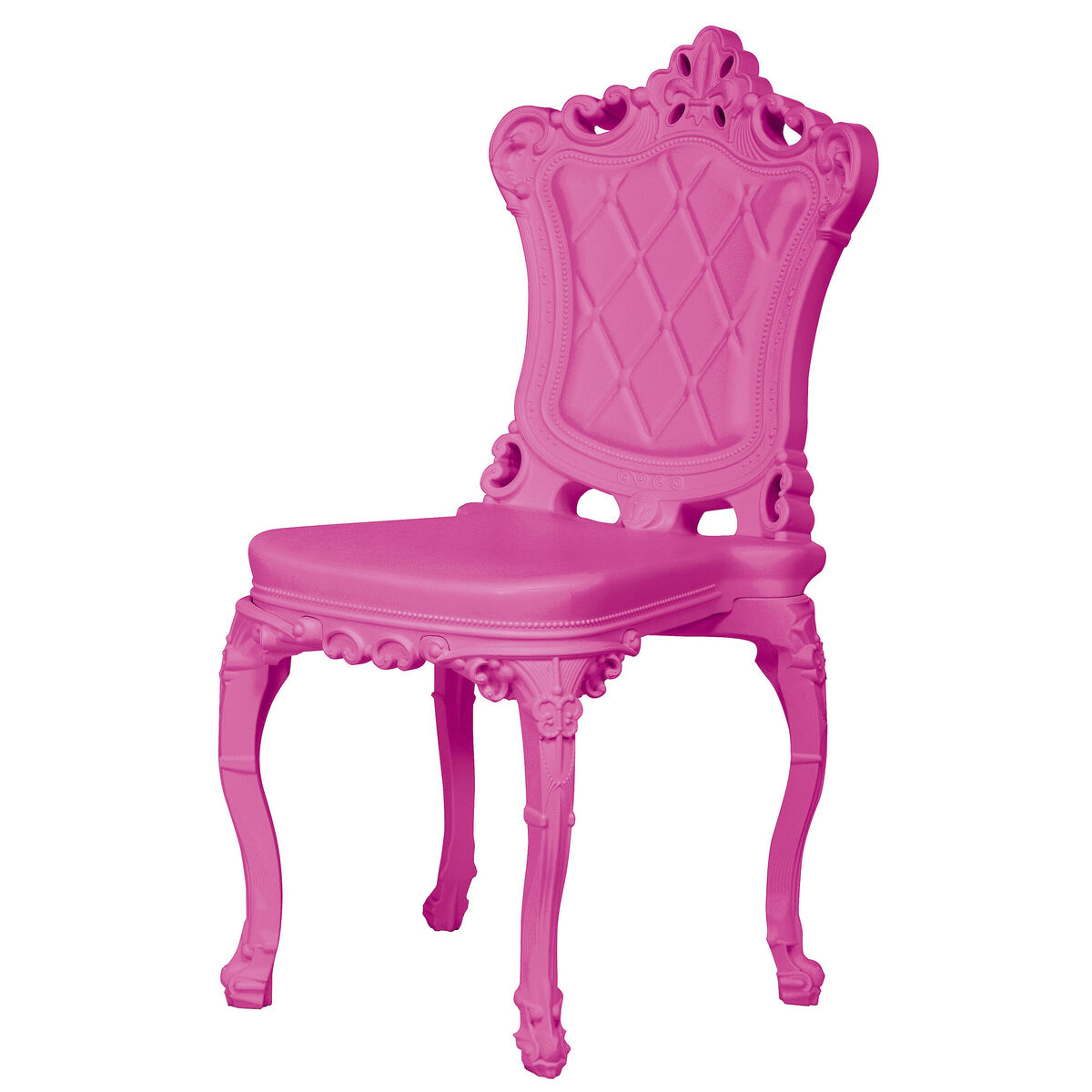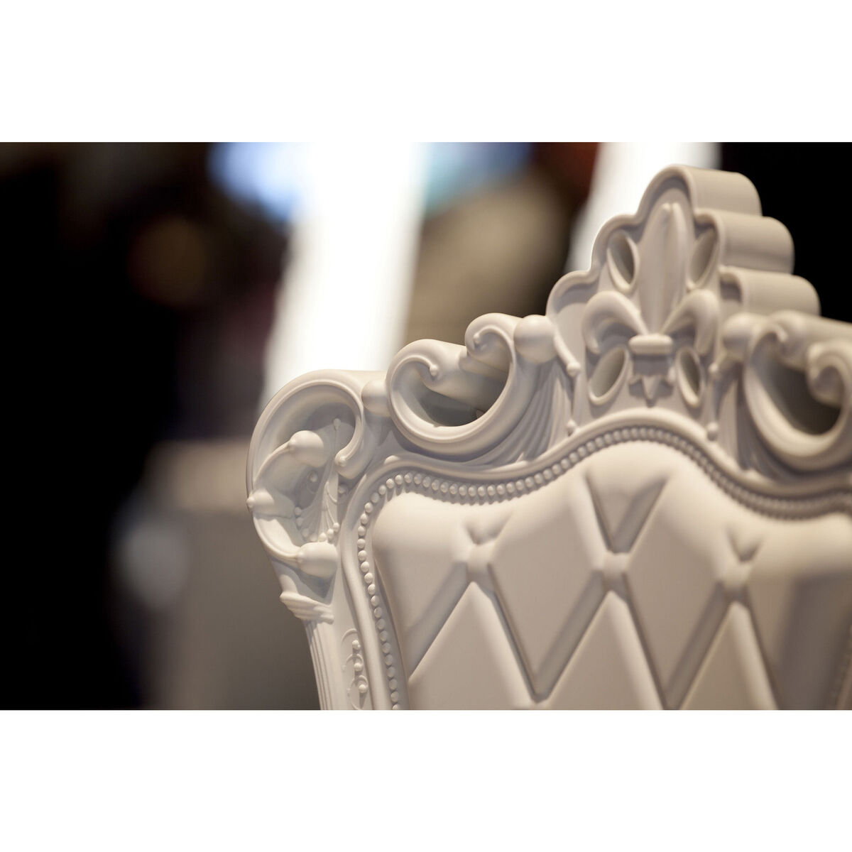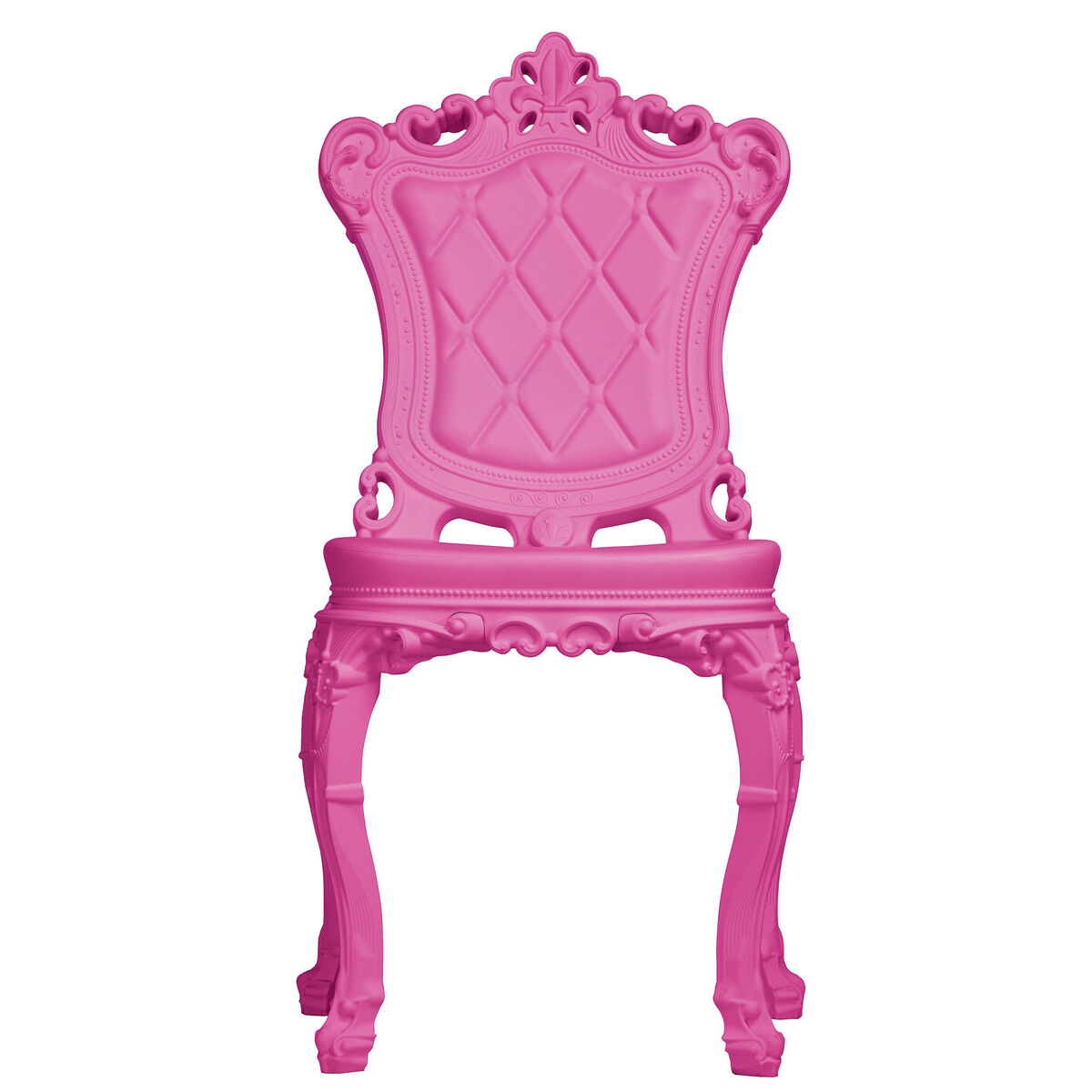 This chair is firmly 'royal' and perfect for creating a fun, quirky dining area, whether indoors or outdoors. Having been reigning supreme on our terraces and gardens with their cheerful and colourful collections, Italian publishing house Slide launches ″Design of Love″, a new, unbridled fantastic brand! Created by the designer duo Graziano Moro and Renato Pigatti, this range displays a Baroque style reminding us of our buried childhood dreams... Princess thrones, oversized mirrors, playful accessories... A truly fresh air in the world of outdoor furniture! This collection, entirely made in Italy, will seduce those who feel like bringing pieces with strong identity to their exteriors, mixing a funny style and Rococo inspiration. The entire collection is made of polyethylene and is therefore highly UV- and bad weather resistant, and can be cleaned by with one single movement of sponge. All items are available on request in a vast array of other colours and in lacquered versions: feel free to contact our customer service.