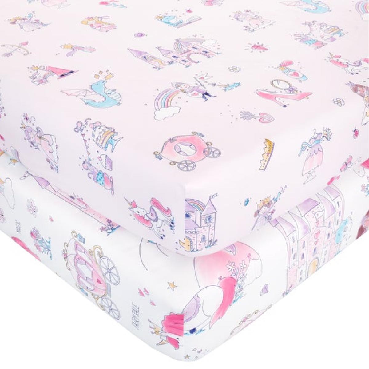 * Princess Design * Easy Care * Machine washable * 2 Pack The Princess Set of 2 Fitted Sheets is a must-have for little princesses. With delightful princess-themed designs, these sheets add a touch of magic to any bedroom. They're easy to care for and machine washable, with two fitted sheets in each pack for added convenience. This collection is verified by OEKO-TEX® and independently tested for harmful substances as well as manufactured using sustainable processes under socially responsible working conditions.