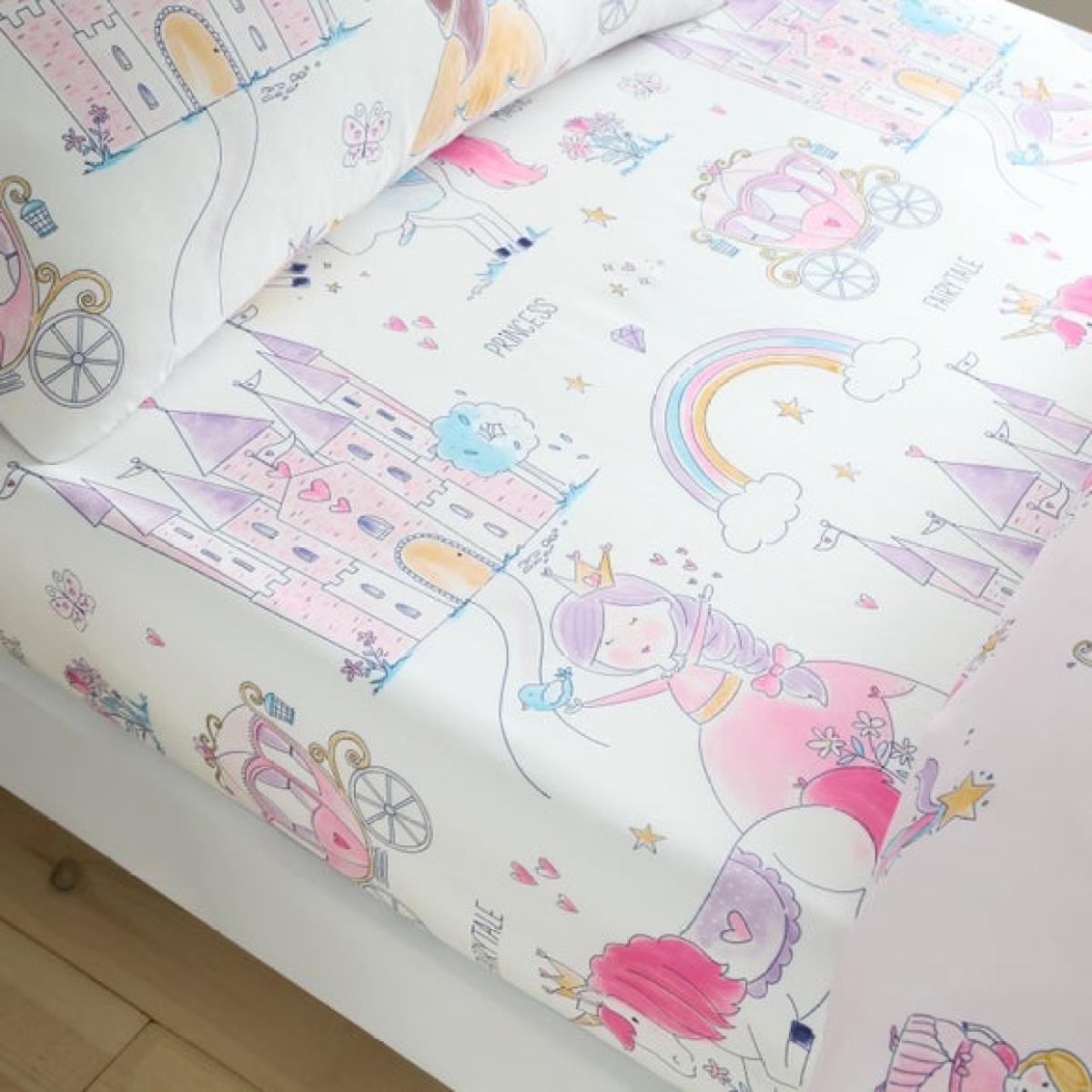 I really like the Princess set of two fitted sheets for its playful yet soft design, making it ideal for creating a cheerful nursery or child's bedroom. The colourful, whimsical pattern works well in a variety of interiors, especially those with a light, pastel colour scheme or a fantasy-themed decor. Practical tips include pairing it with plain pastel duvet covers or cushions to let the sheets stand out, and using it to add a touch of fun to everyday spaces. It’s a versatile choice that can easily complement both modern and traditional interiors, ensuring that the little one’s sleep space feels both cosy and visually engaging.