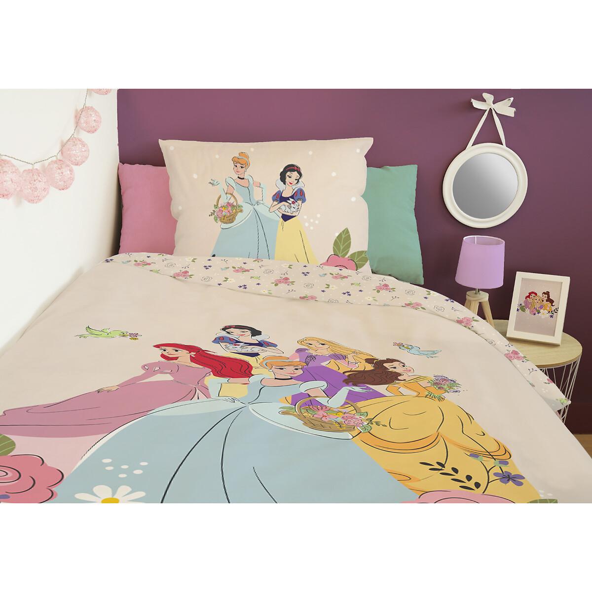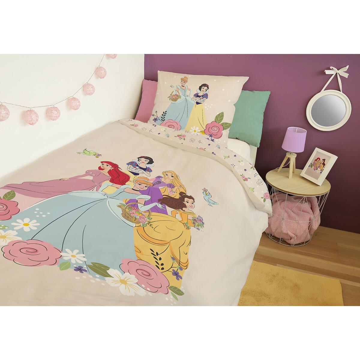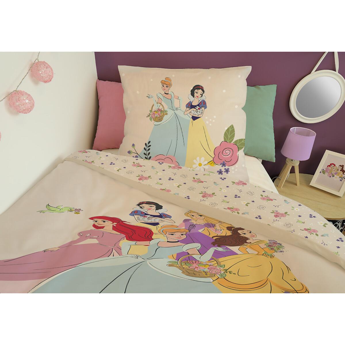 Immerse yourself in the world of Princess Flowers! A cotton bed set consisting of a single duvet cover and a square pillowcase. Cotton is part of our daily lives. We love it for its suppleness and softness. Easy Care, it is ideal for the beds of young and old alike!Product Details • 100% cotton • 144 thread count • Duvet cover has Princess Flowers printed on the front and small flowers printed on the back • Pillowcase with double-sided Princess print • Envelope-style opening Match this item with the rest of the bedding in the range for a stylish bedroom. And you can mix and match it with different colours and styles from our other bedding ranges when you want to change things up and create your own unique look. Care Advice • Machine washable at 40°C • By washing your laundry at 40°C instead of 60°C, you limit energy consumption. Sizes • Pillowcase : 65 x 65cm • Duvet cover : 140 x 200cm • OEKO-TEX® Standard 100. Standard 100 certification by OEKO-TEX® tests textile products for harmful substances via an independent, international label.