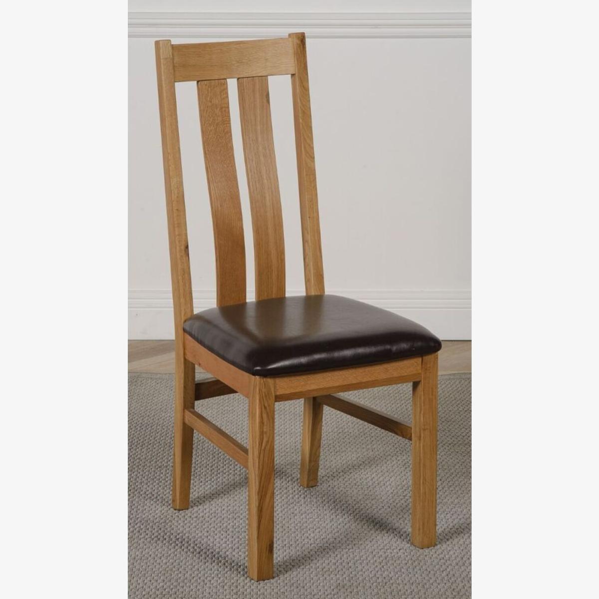 pAn elegant high back wooden dining chair, the Princeton oak dining chairs are ideal for use in the dining room, kitchen, living room, as dressing table chairs, or even in your home office as a desk chair. Handmade by skilled craftsmen, the Princeton dining chair features a stylish arched back design with classic braced legs for extra stability and strength.pp. These oak chairs are crafted from solid oak timber finished in a matte lacquer ensuring year round protection with no need to apply oil as the lacquer seals and protects the wood.pp. With their high back design, comfortable cushioned premium bonded leather seat and braced solid oak legs the Princeton wooden dining chairs are ideal for entertaining guests and robust for everyday use.pp. The Princeton wooden kitchen chairs are delivered fully assembled. Our Kitchen table chairs are made to strict British Standards and come with a full 12 month warranty.p