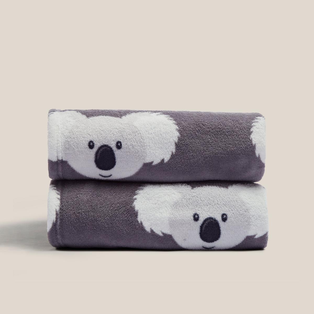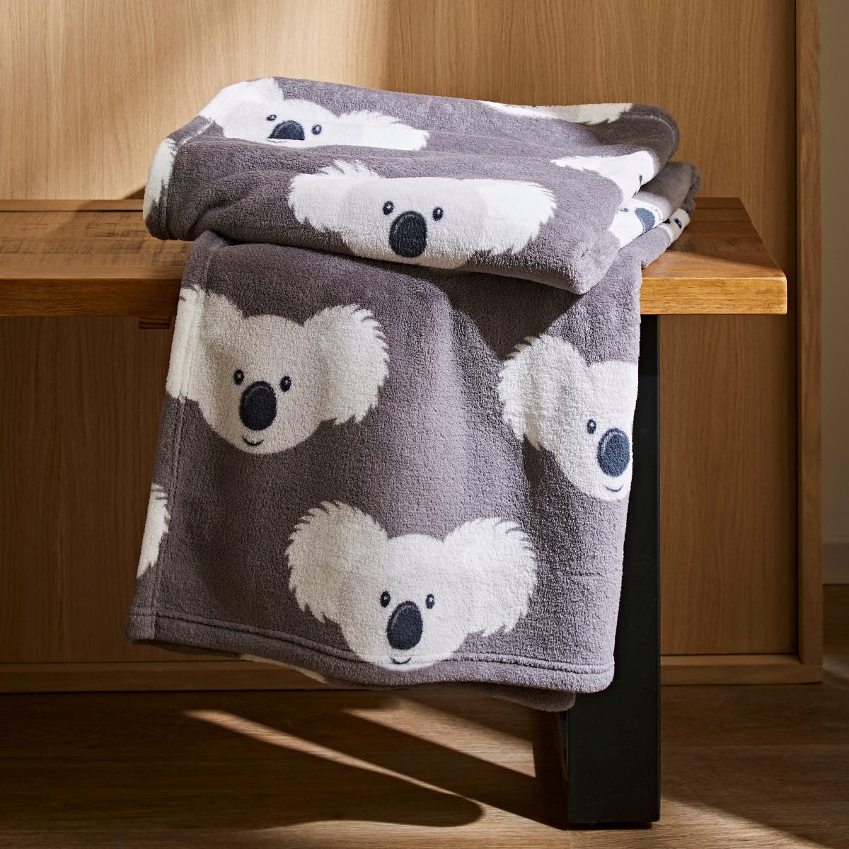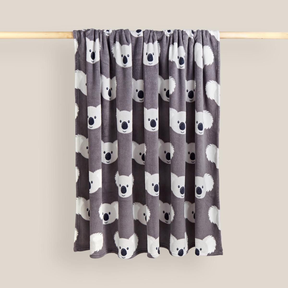 Printed Fleece Koala 130x160cm Throw Grey Grey