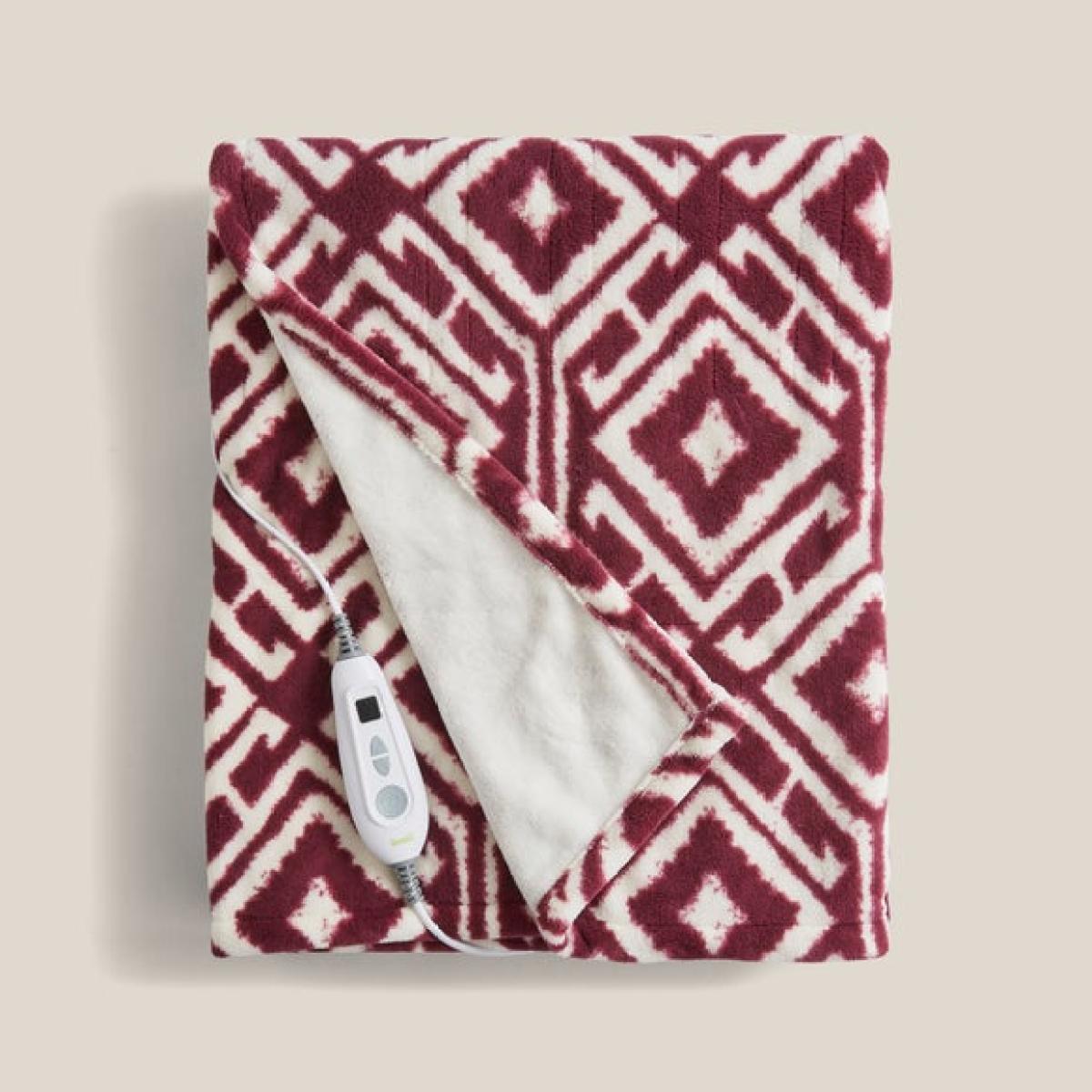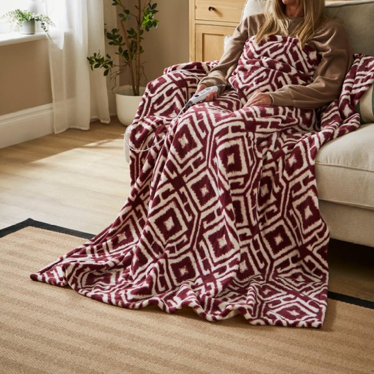 * Stunning global ikat design * Electric heated throw * Soft fleece fabric * Machine washable * Made from 100% recycled polyester Add a touch of global style to your home with our Global Ikat Heated Throw. This beautiful throw features a stunning ikat design and a super soft fleece fabric. The electric heating function will keep you warm and cosy, and it's also made from 100% recycled polyester and is machine washable for easy care.
