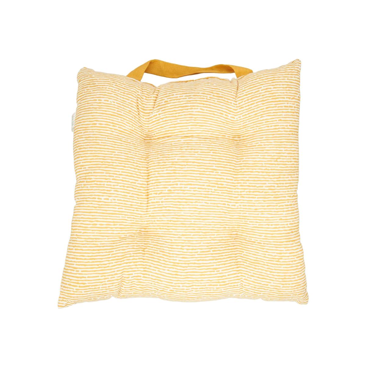 I love this yellow seat pad with handle for its practicality and cheerful colour. It works well in casual kitchens or dining areas, especially when you want a touch of brightness without committing to bold patterns. The handle makes it easy to carry around, so it’s ideal for both indoor use and outdoor picnics. For styling, pair it with neutral-toned chairs or mix with other colourful textiles for a lively, eclectic look. It’s also a smart choice for family spaces, offering comfort while maintaining a simple, functional aesthetic.