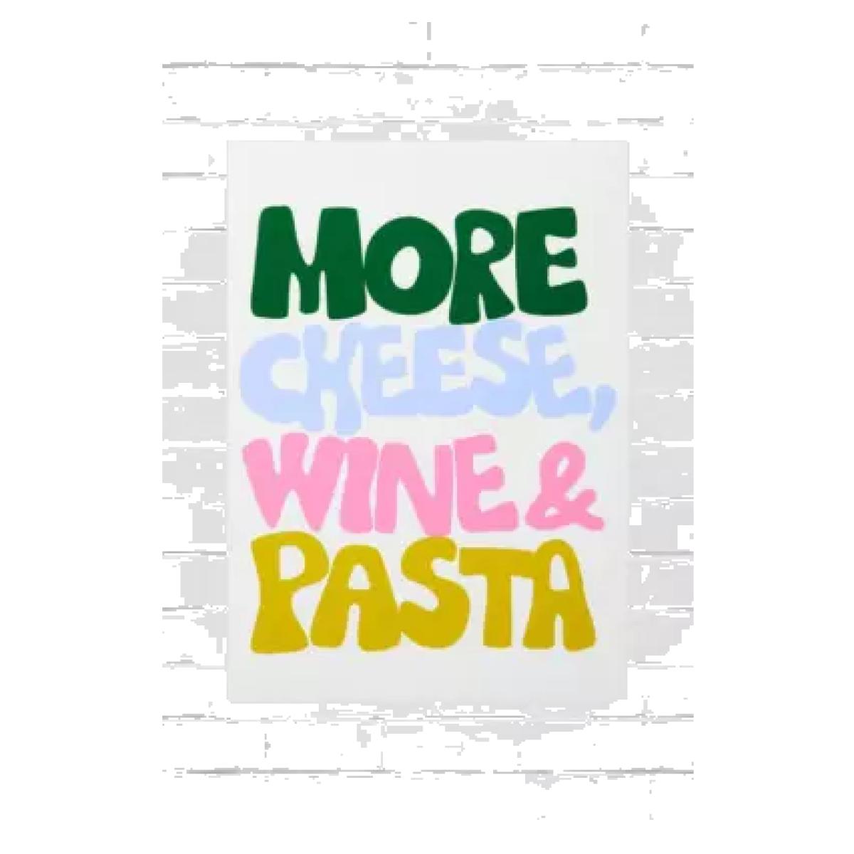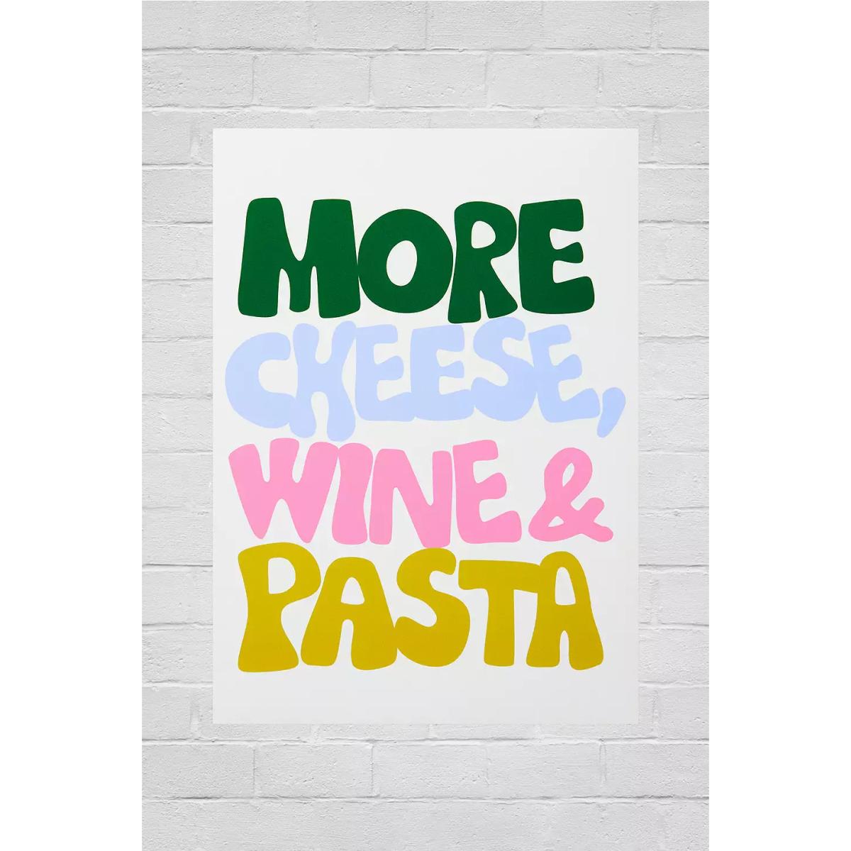 Complete your kitchen space with this Printed Weird wall art print. Topped with retro-look typography, the poster features a 'More cheese, wine & pasta' slogan printed on. **Content + Care** \- Paper \- Wipe clean **Size** \- A4