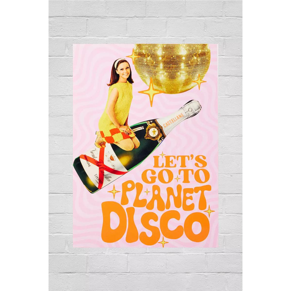 Explore Planet Disco with this Printed Weird poster in your space. The wall art print features a collage-effect disco ball graphic with a 'Let's explore planet disco' slogan in retro typography. **Content + Care** \- Paper \- Wipe clean **Size** \- A4