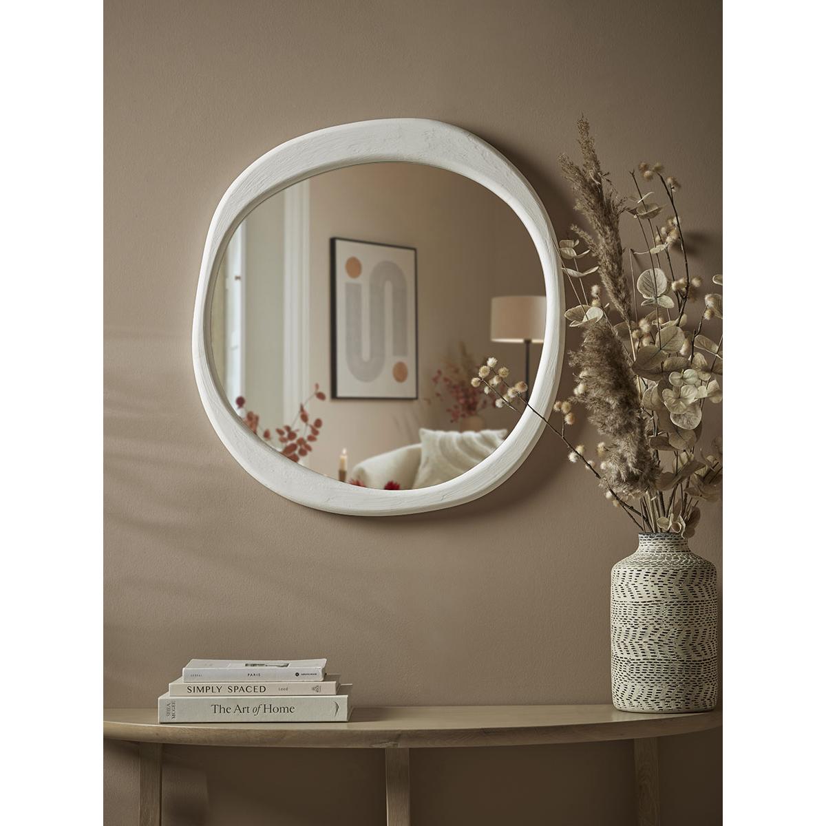 Brighten your home and open out your space with our round Prisca mirror. Crafted from MDF, the painted white frame has an uneven shape, adding a laid-back and relaxing feeling to your wall whilst creating a unique focal point that elevates your home beautifully.