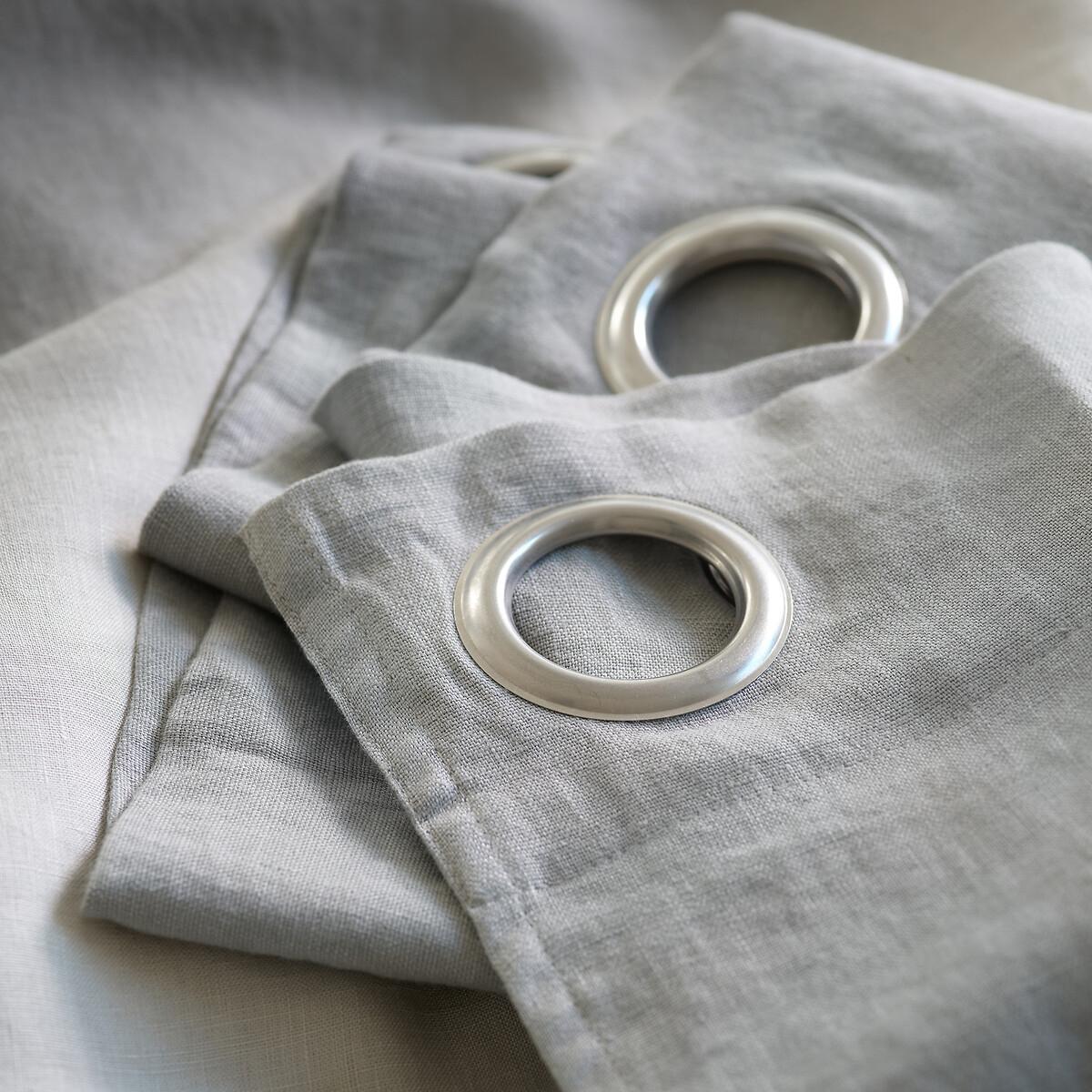 Private pre-washed linen blackout curtain. Appreciated for its flexibility, washed linen embellishes and softens over time. Slightly wrinkled, ironing is unnecessary. Product Details • 100% washed linen, 215 gsm • Lining 100% polyester • Finish, hemmed bottom, ready-to-hang • Eyelet diameter 40mm. Care instructions: • Machine washable at 30°CSizes • Width 140 x Drop 180cm • Width 140 x Drop 220cm • Width 140 x Drop 260cm • Width 140 x Drop 350cm • OEKO-TEX® Standard 100. Standard 100 certification by OEKO-TEX® tests textile products for harmful substances via an independent, international label.